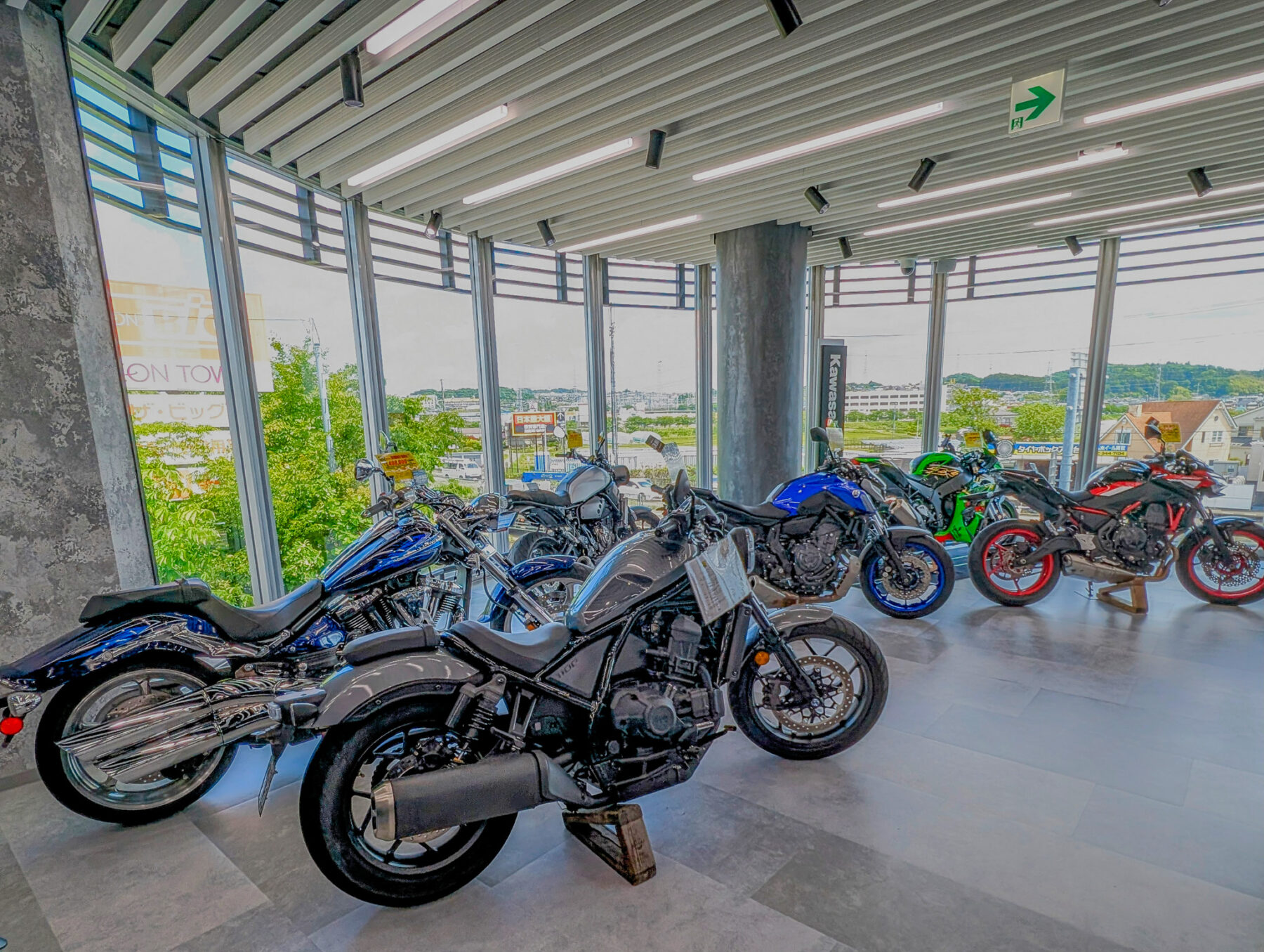 商品を大切にお取り扱いさせて頂き、新車・中古車 常時200台以上を展示しております。二輪車が持つ美しさや魅力を引き出し最大限に感じることが出来る特別な店舗。お客様に特別な空間をお届けします。