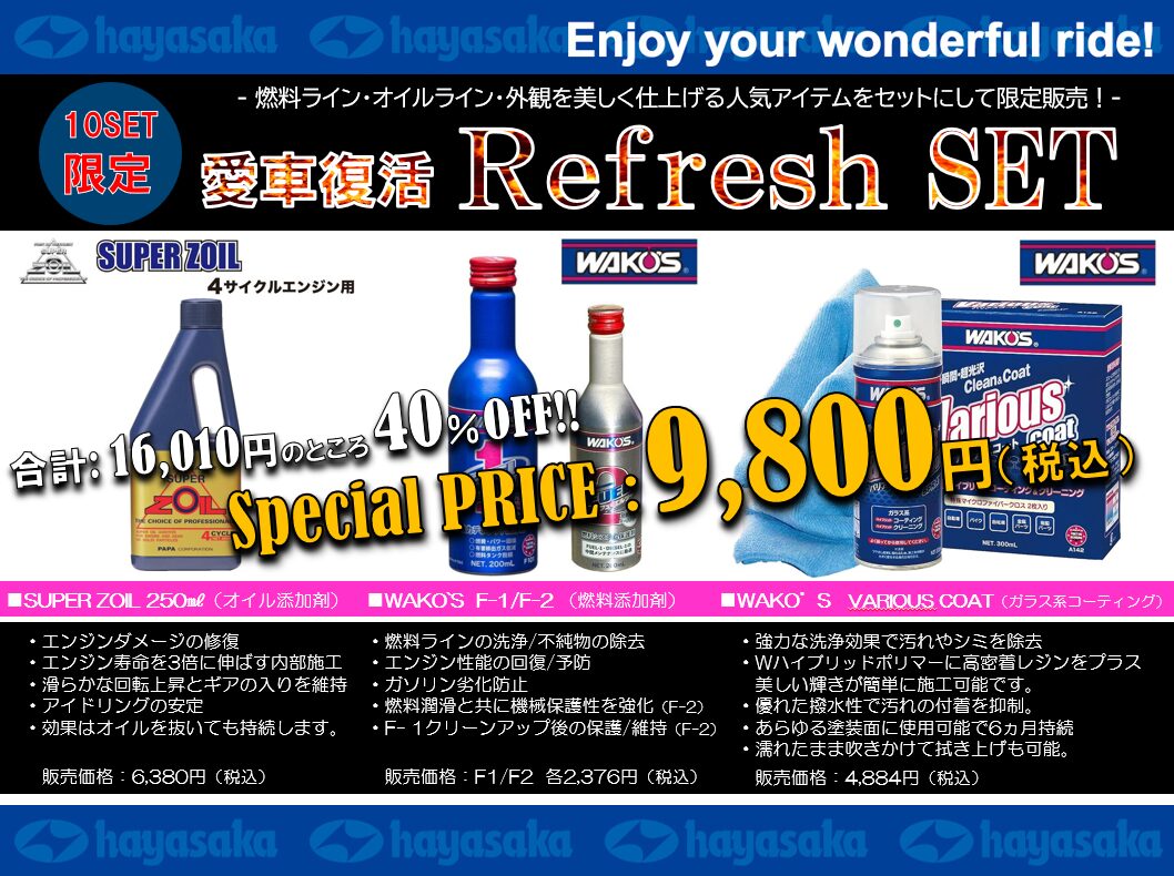 【Winter Sale】バイク×愛車復活 Refresh SET 個数限定販売! -内側も外側も美しく-