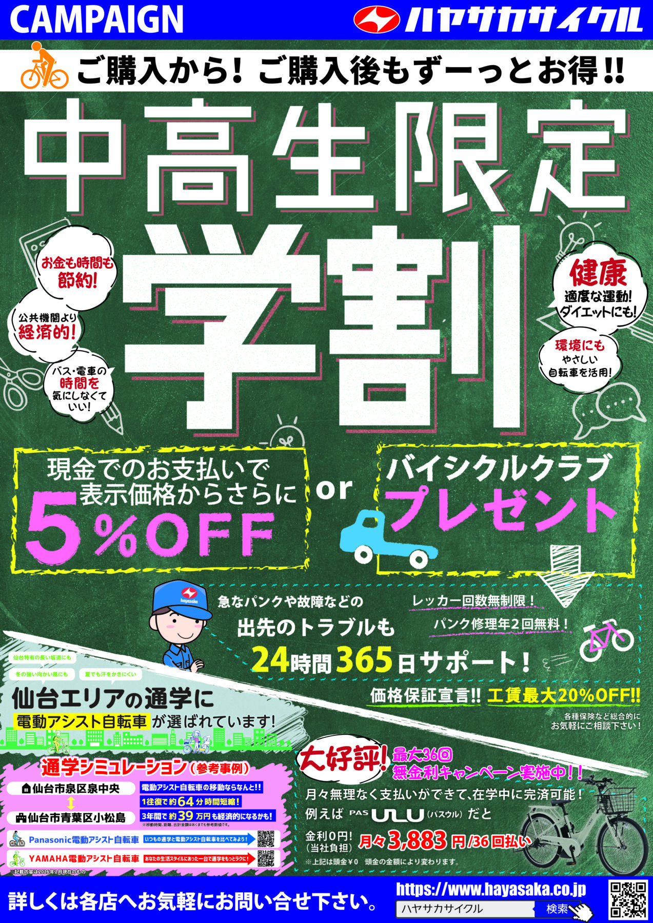 中学生・高校生限定の学割キャンペーン開催中! 春の新生活に向けて自転車をお探しの中学...