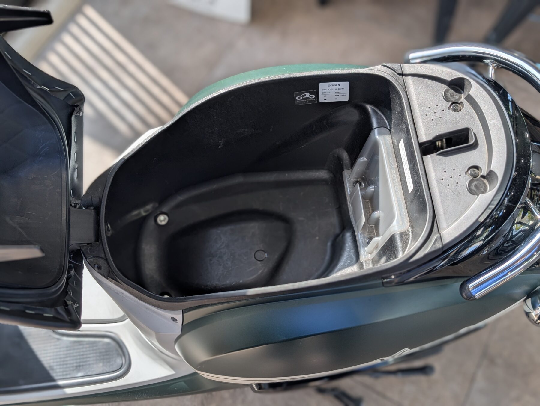 - 大容量のシート下収納: ヘルメットやレインウェア、お買い物袋もしっかり収まります。