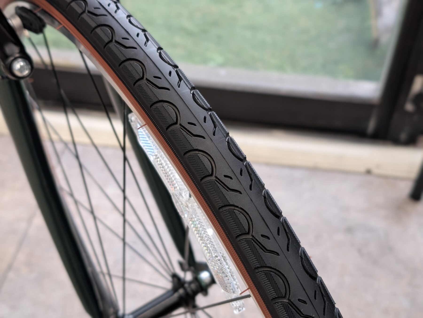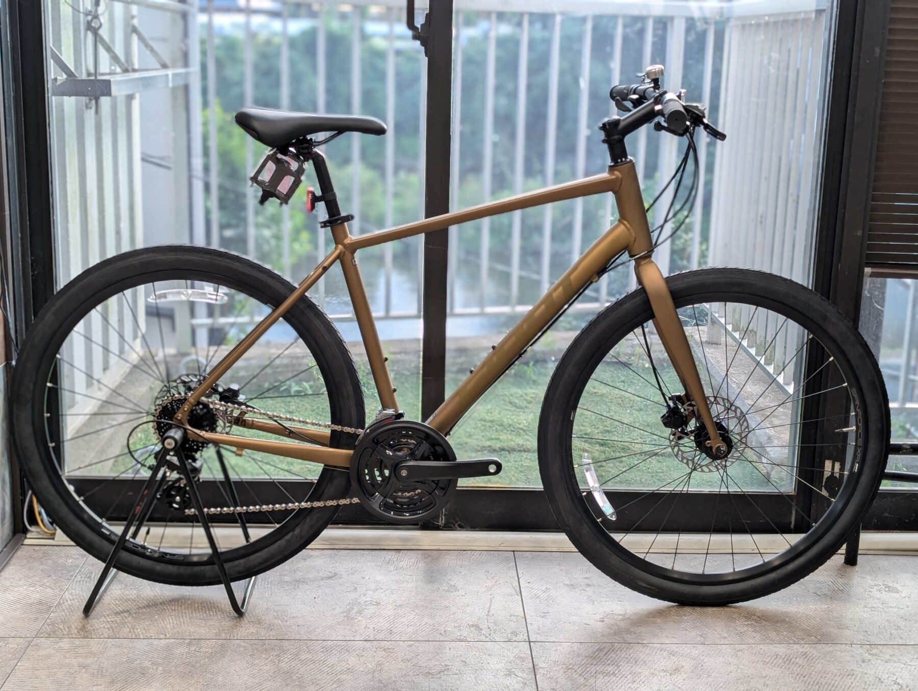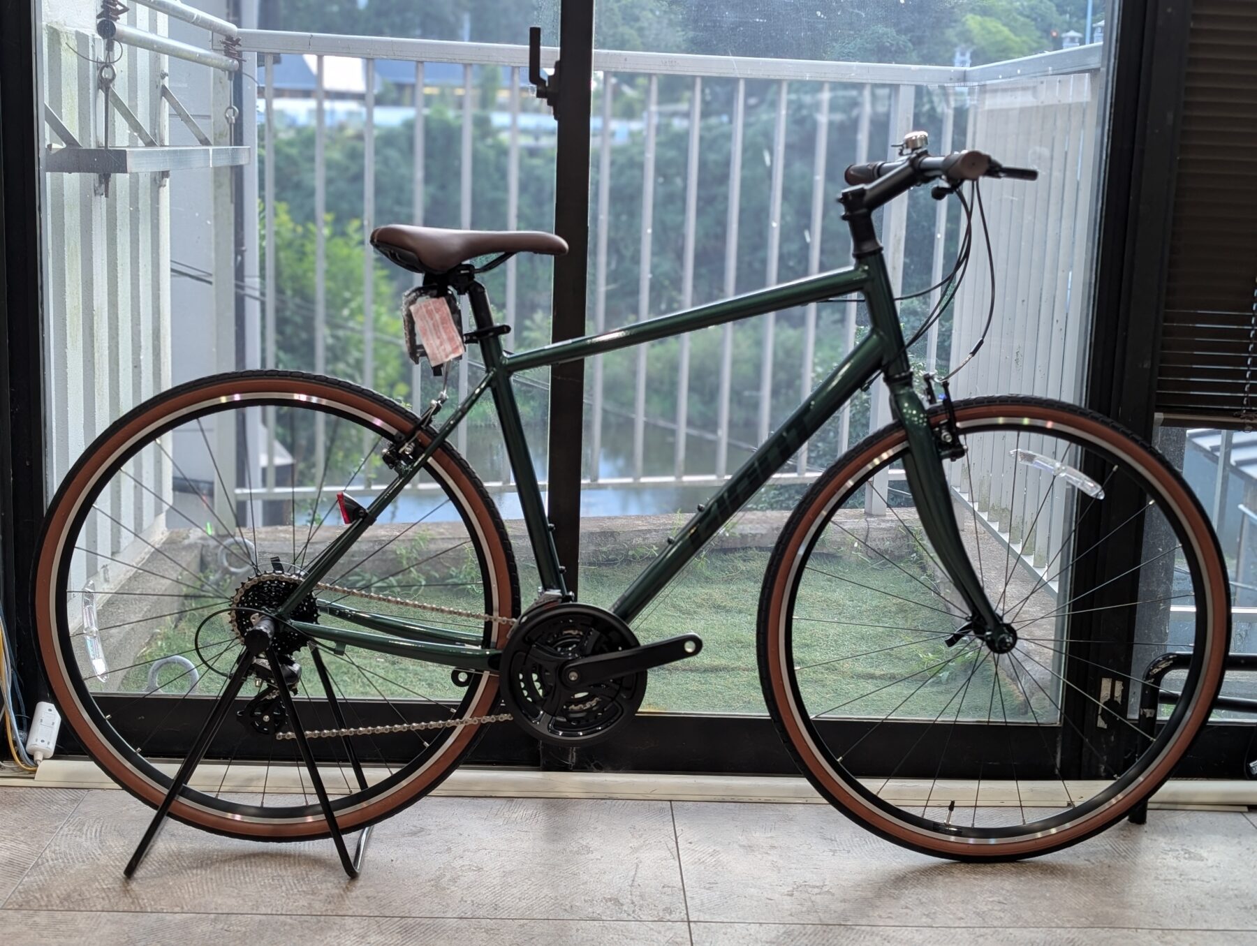 通勤や通学、休日のサイクリングまで1台で何役もこなせるクロスバイクで、太めのタイヤを装着しており段差や砂利道にも強い仕様になっています✰