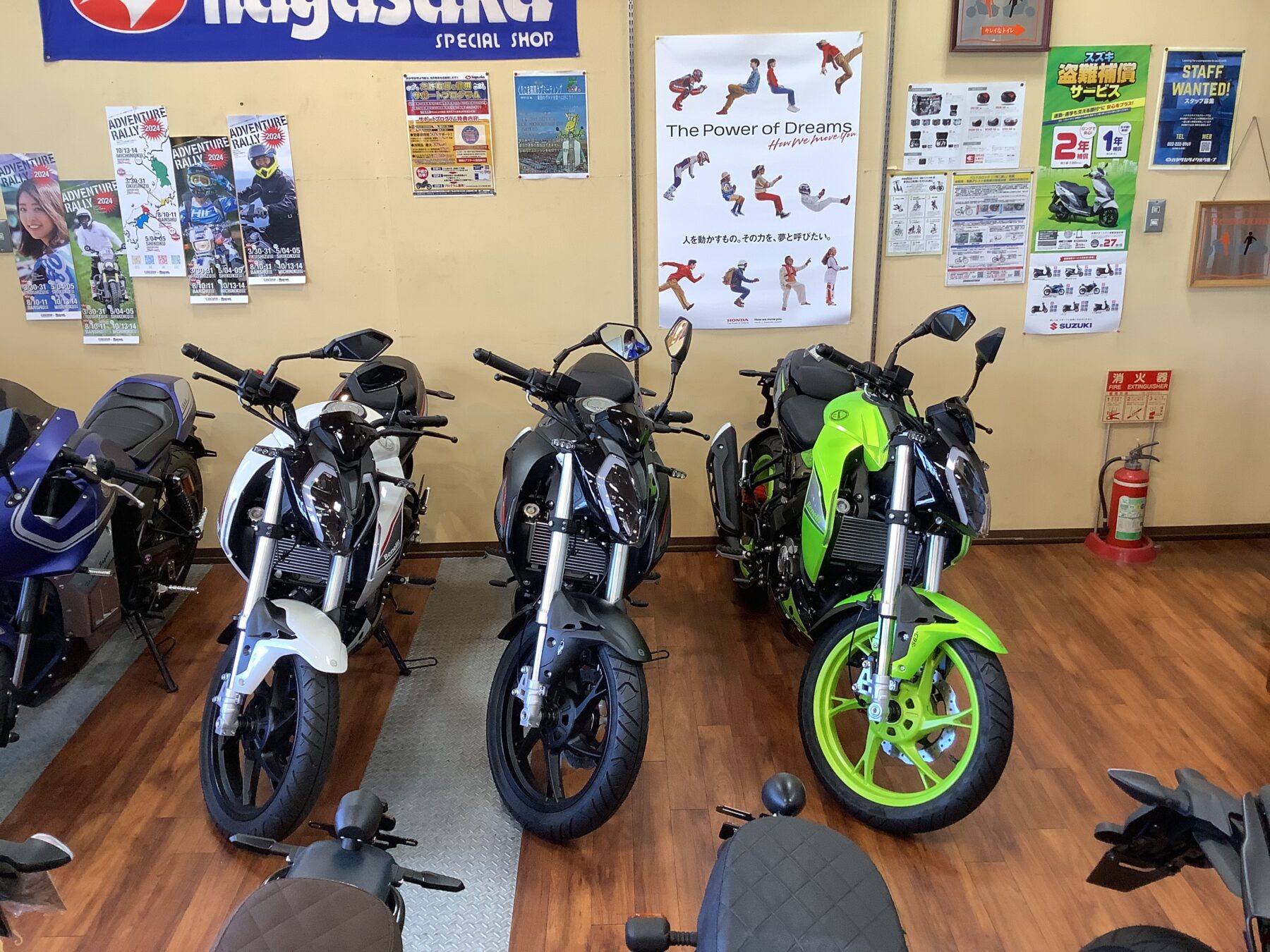 当店では【ベネリ 125S】のグリーン、ブラック、ホワイトを展示しております!