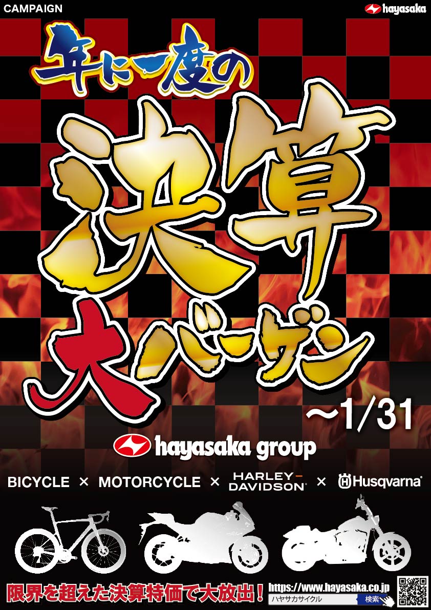 車両。パーツ。ウエア。すべてがお買得の「決算プライス」!皆様、この機会をぜひお見逃しなく!