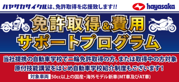 さらにハヤサカサイクルでも免許サポートキャンペーン実施中!