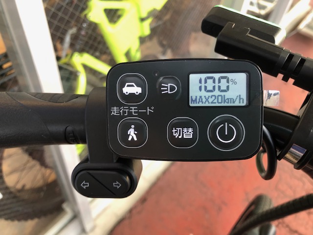 ↑こちらは車道走行モードの表示となります。最大20km/hでの走行が可能です。