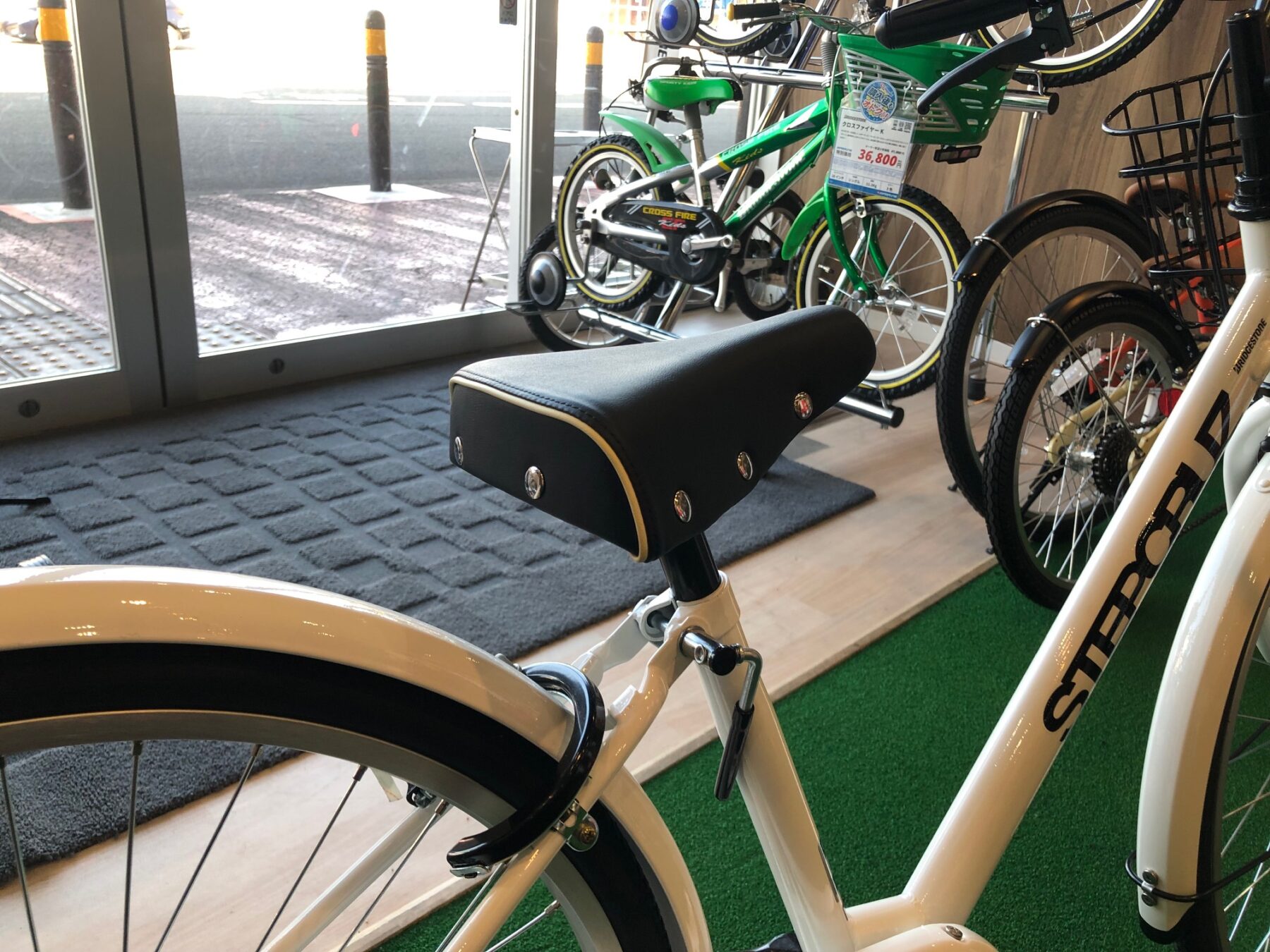 幅広でクッション性のあるテリーサドルが採用されていて、お尻への負担軽減かつ安定して乗ることが出来ます(*’ω’*)