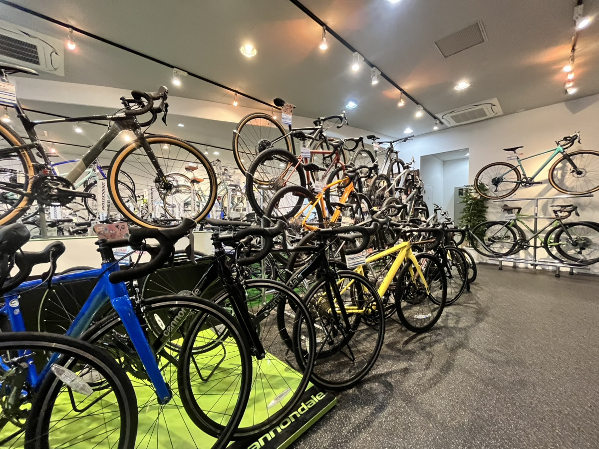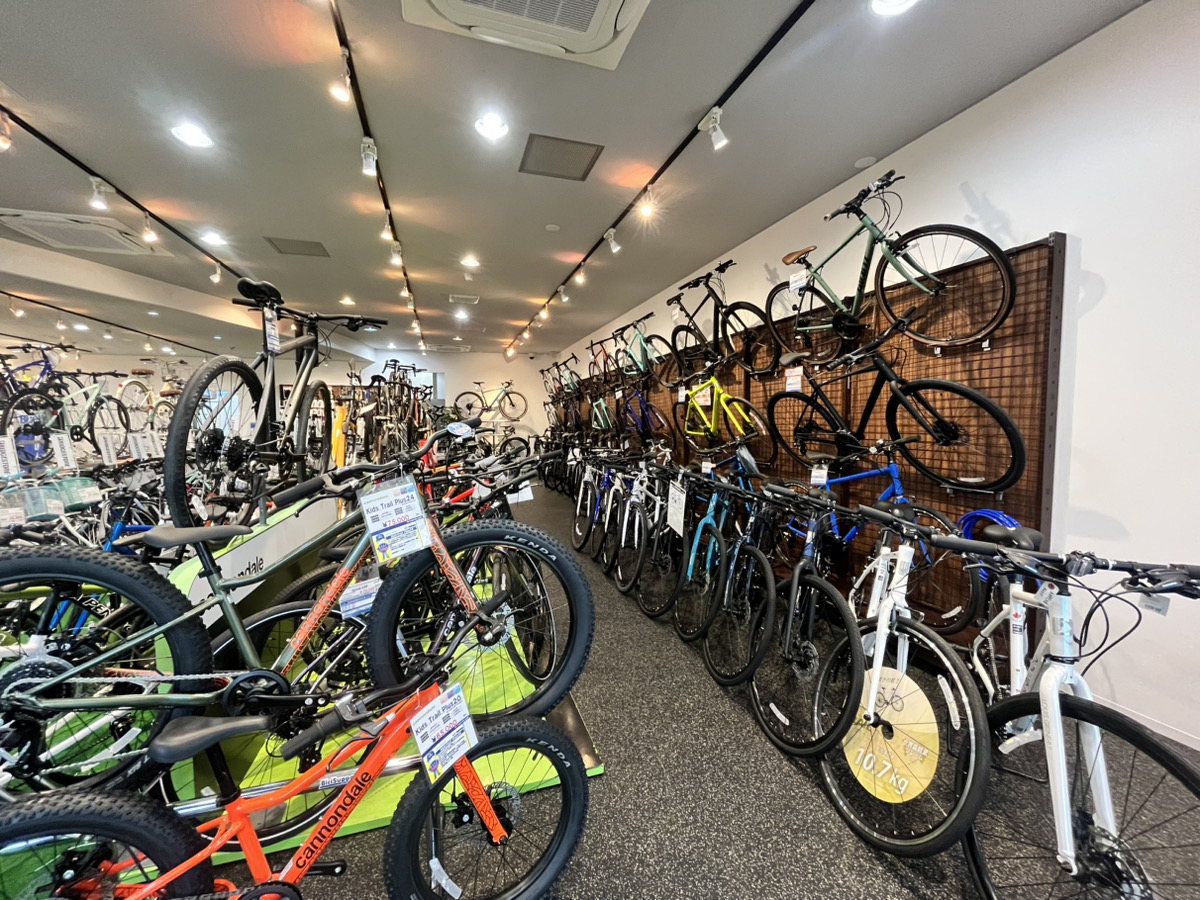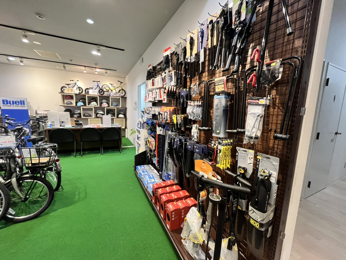 店内には自転車が所狭しと展示されており、パーツも充実しております!