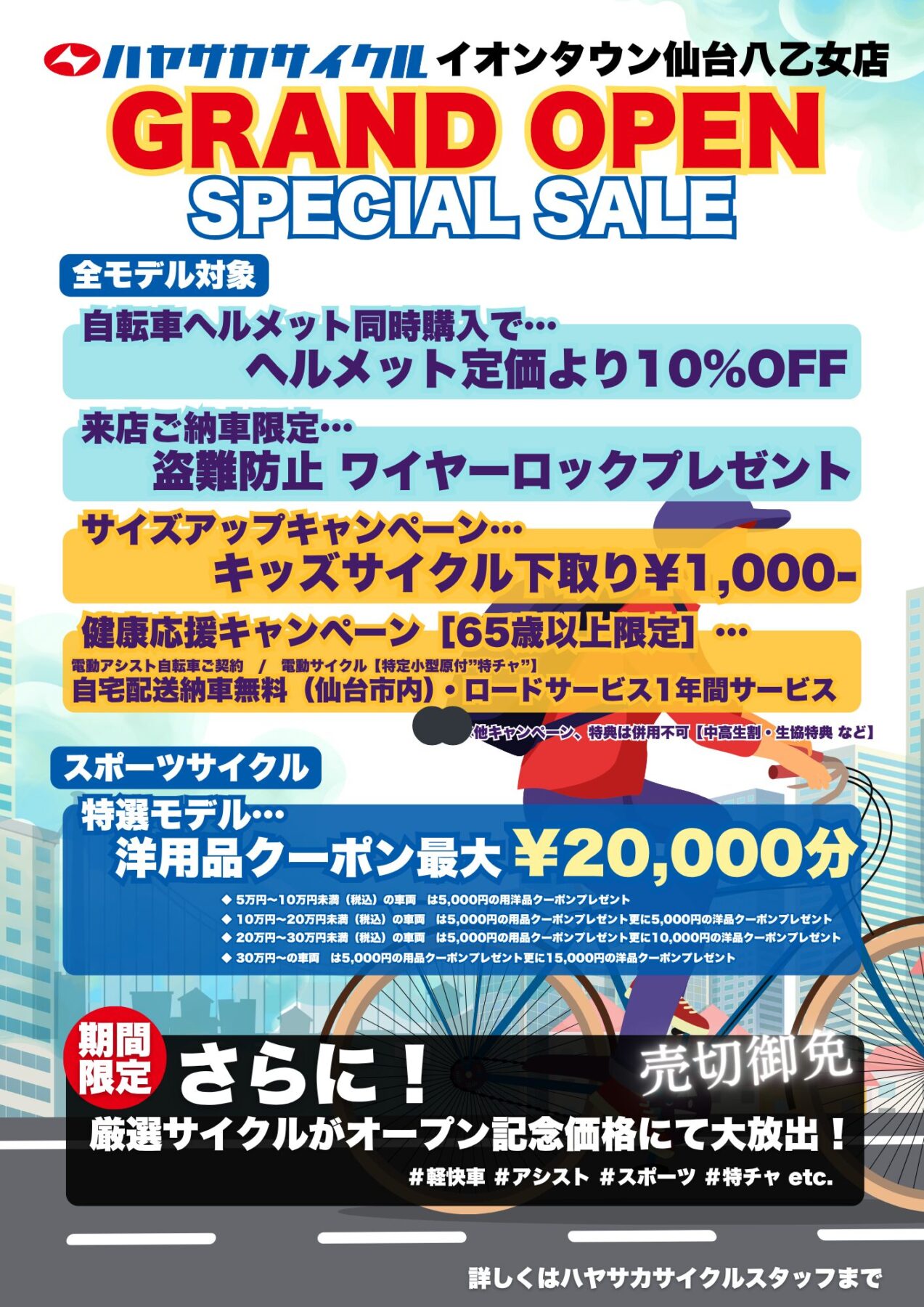 ハヤサカサイクルイオンタウン仙台八乙女店グランドオープン!