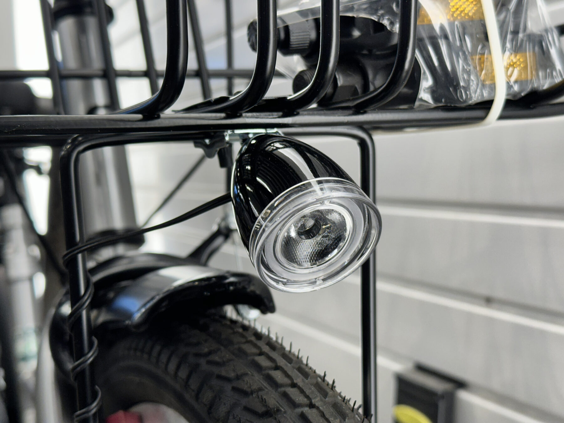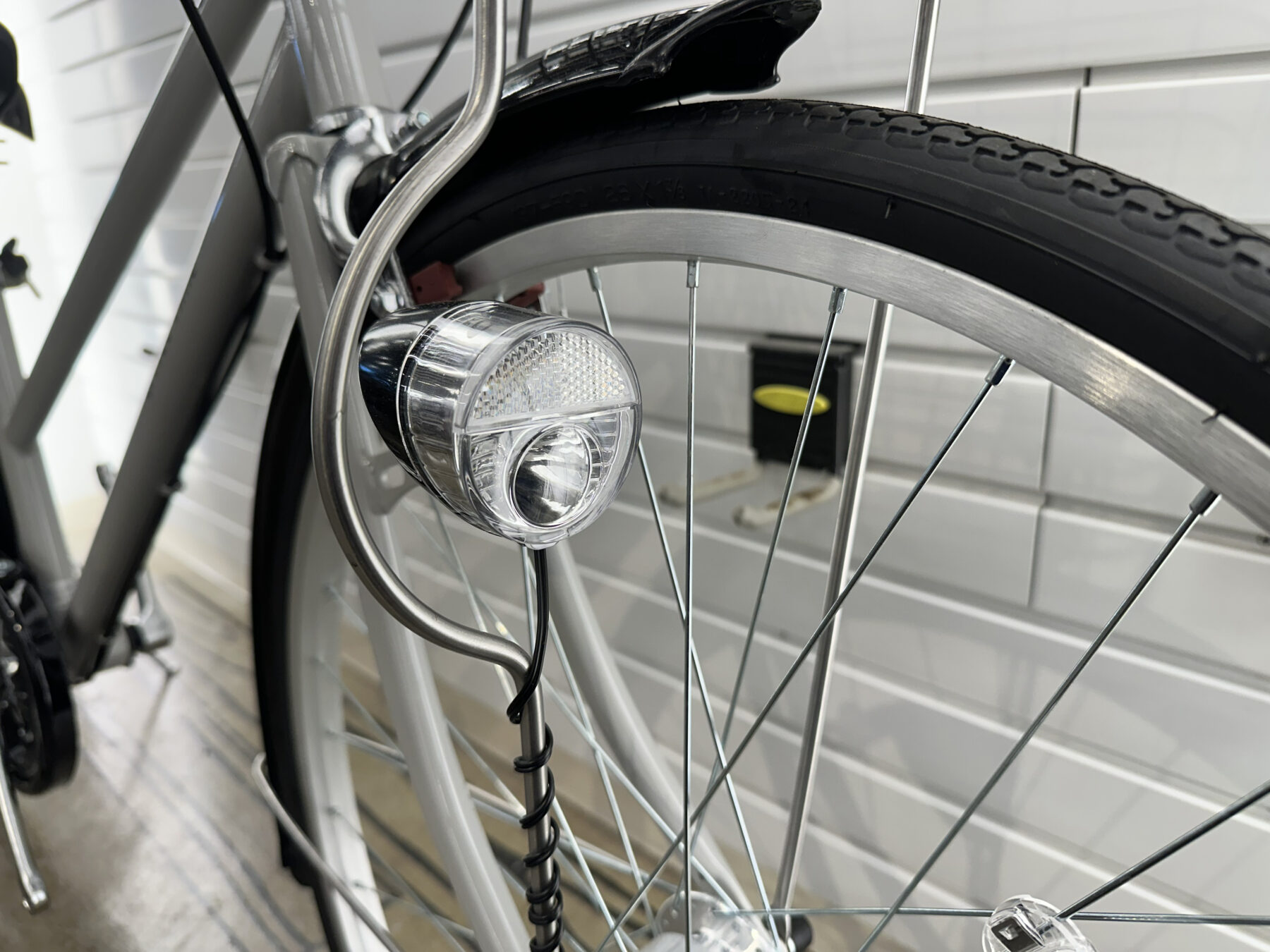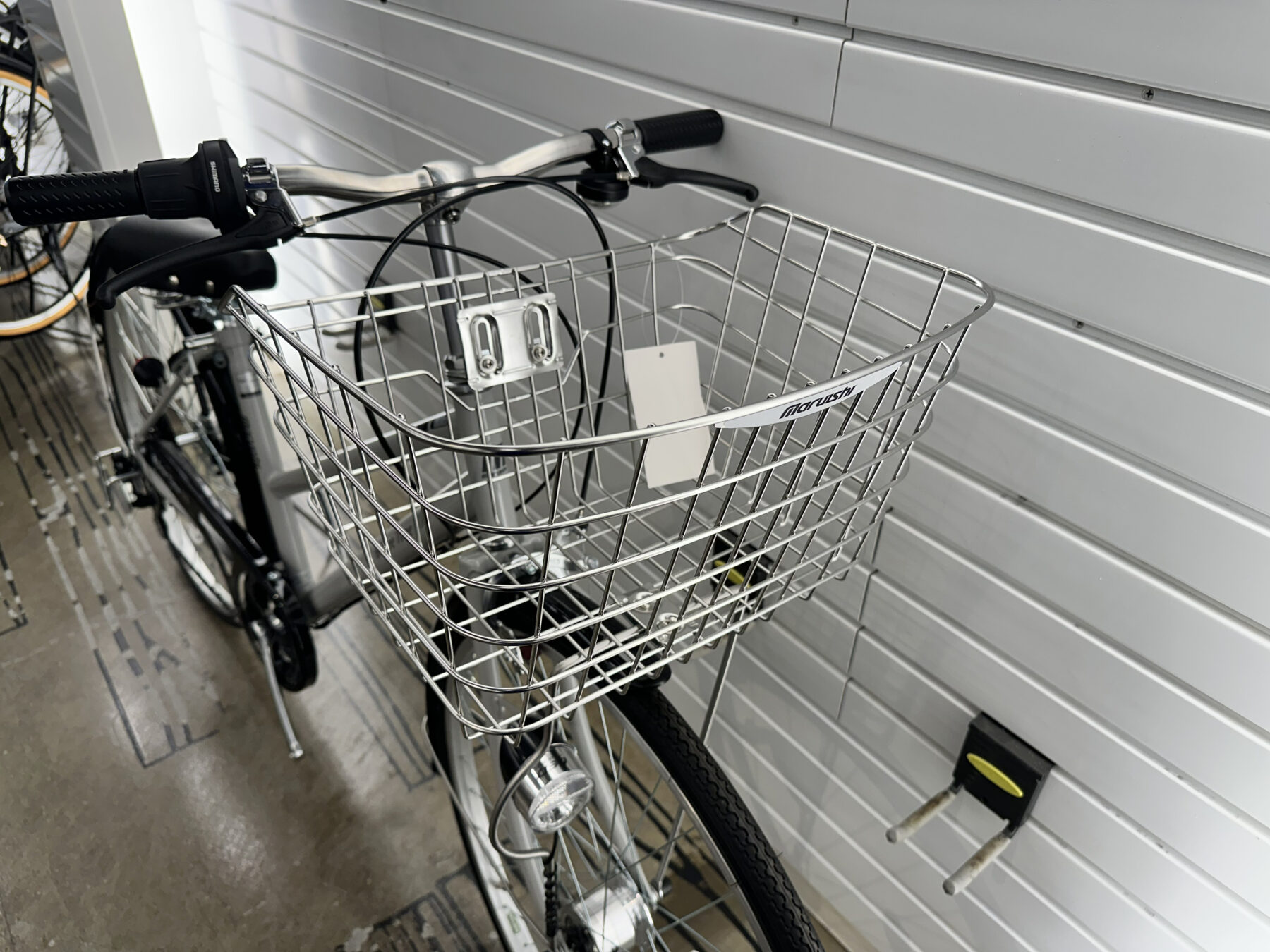 まずはベーシックな車両フリータイム。変形しにくいステンレスのバスケットを装備し、リアはローラーブレーキ。自動点灯のオートライトを備え、必要な部分にはコストをかけているオススメのモデルです。片足スタンドでキャリアもついていないので、ママチャリとしては軽めなモデルです。