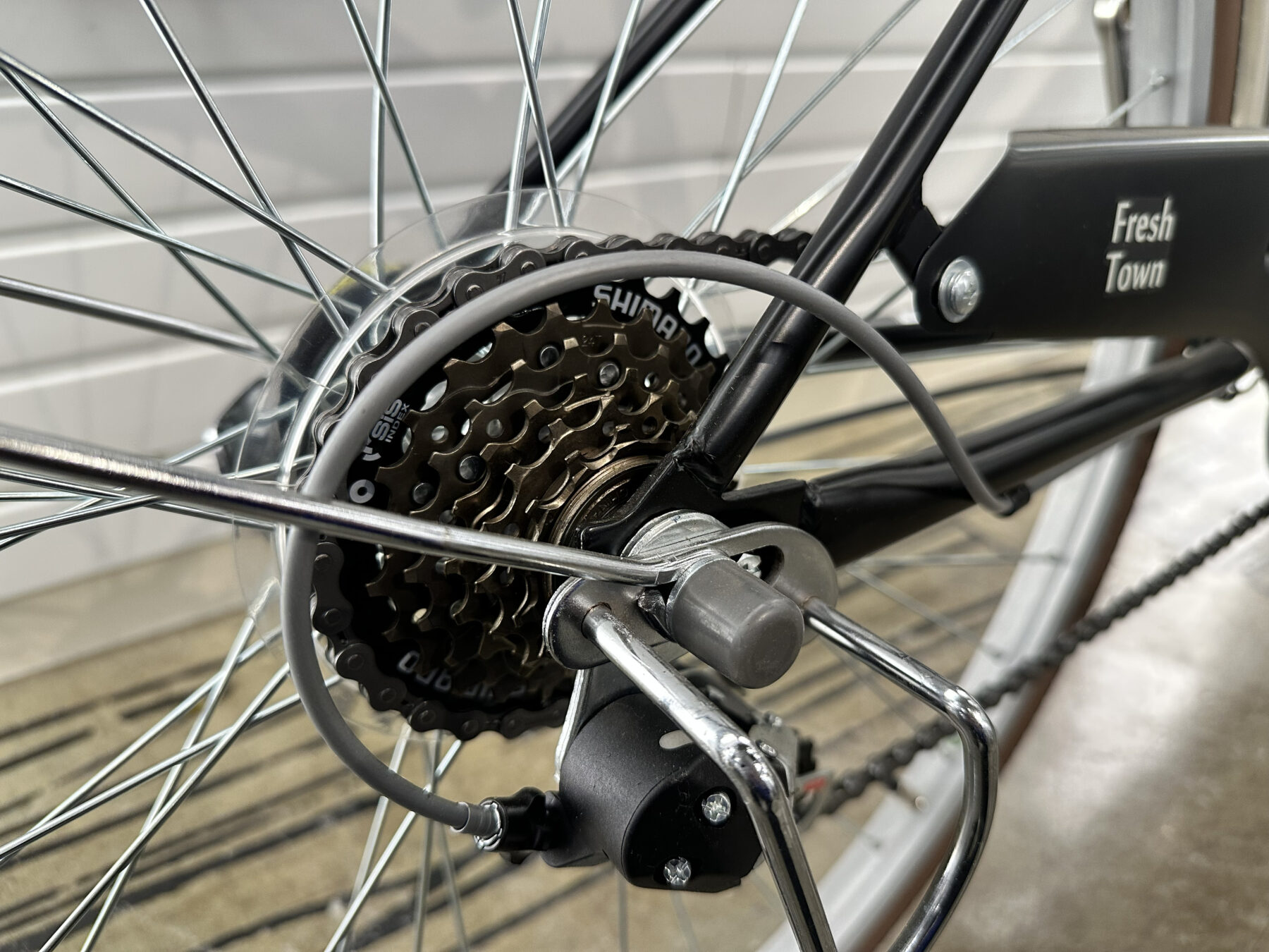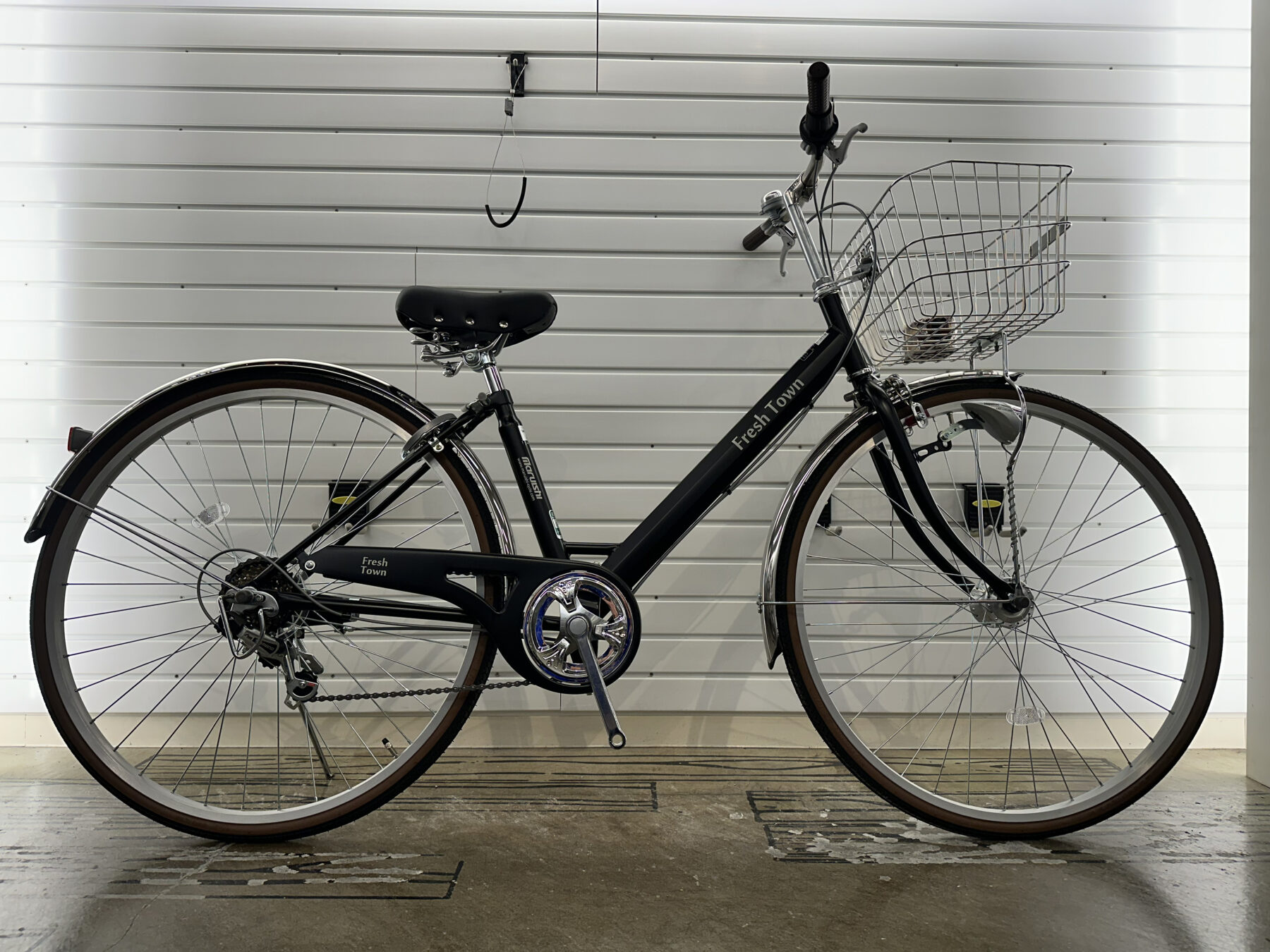 ハンドルとサドルを繋ぐフレームが1本で跨がりやすいフレームが特徴のフレッシュタウン。