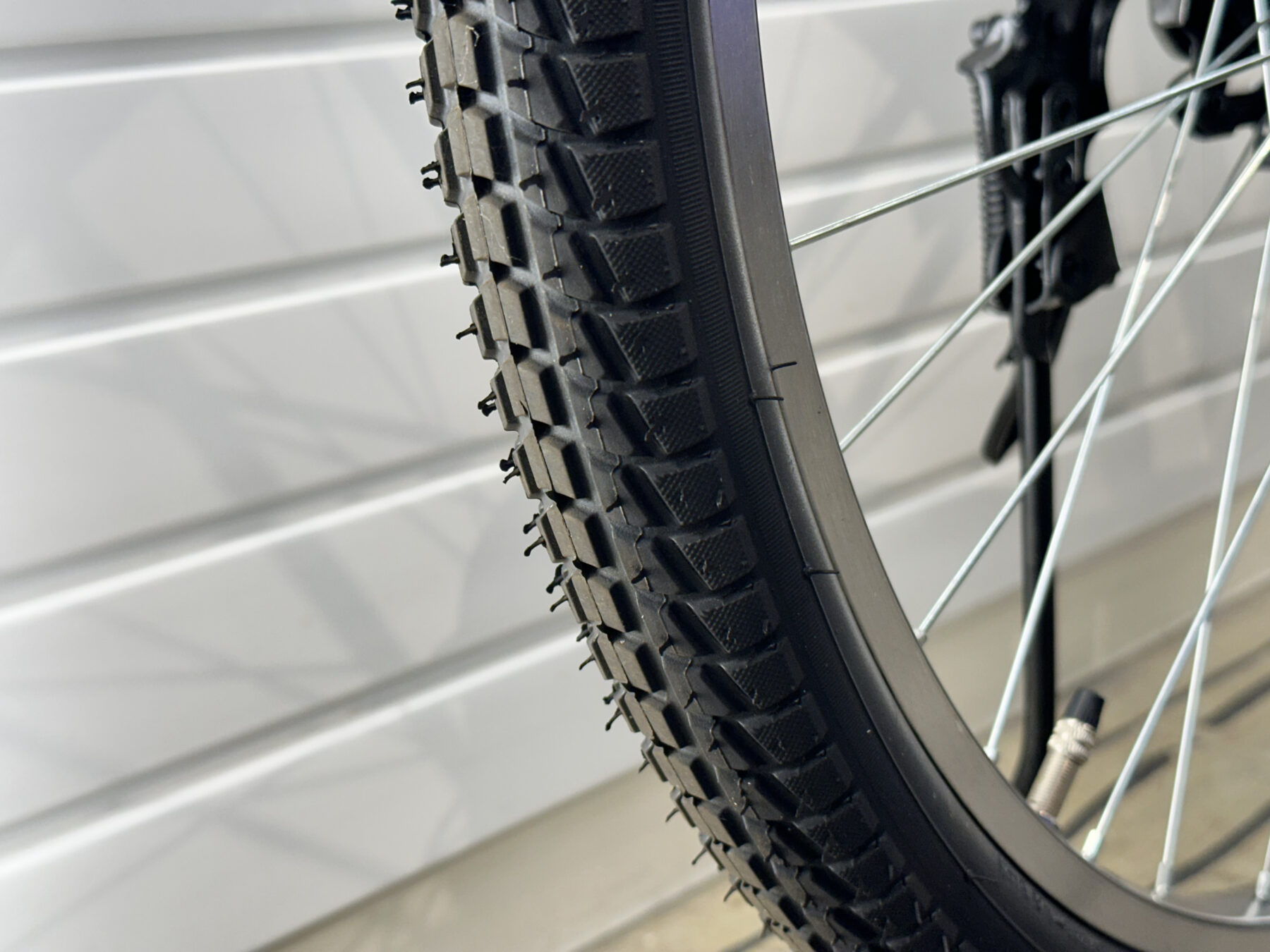 太めなタイヤでゴツい印象が特徴のグラウス。太めなタイヤが特徴の車体ですが、リヤキャリアもデザイン上のアクセントではなく、チャイルドシートの取り付けも可能な本格的な物。質実剛健な1台です。