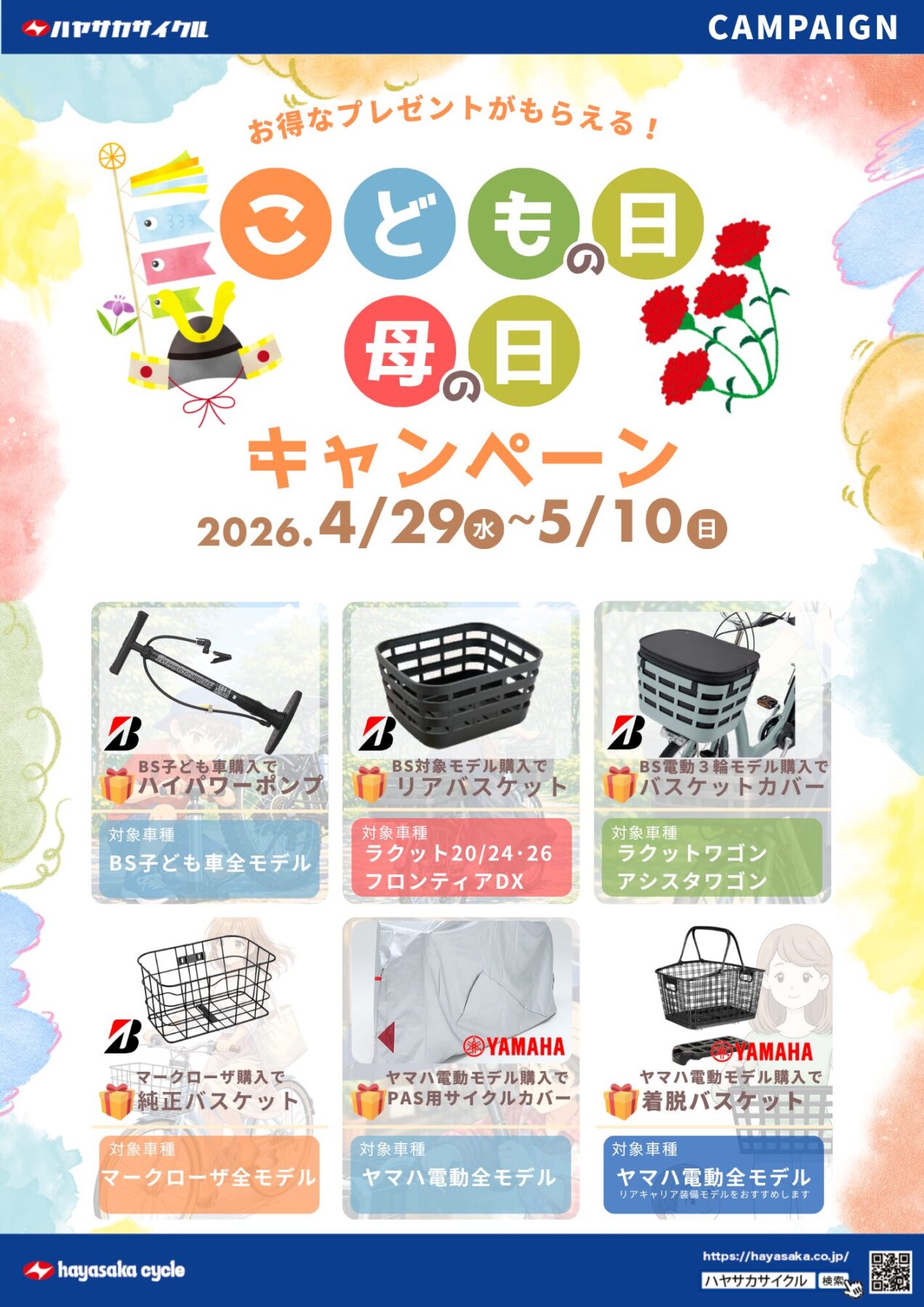 今回は! ハヤサカサイクル自転車取扱店でのG.W.キャンペーンのご紹介です!