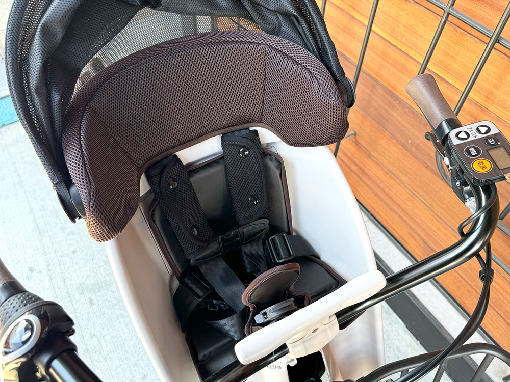 サドル高は72.5~84cmで調整が可能で、両足のつま先が地面に着地できる身長約142cm以上が適応身長。お子様を2人を乗せる場合には、両足のかかとが地面に着地できる身長約155cm以上が適応身長です。子ども乗せ自転車はシティ車よりも重いため、急に停まったときに重さに耐えきれず転倒…ということもあります。安心して乗れる足つきなのか、ぜひ店頭で跨いでご確認ください。