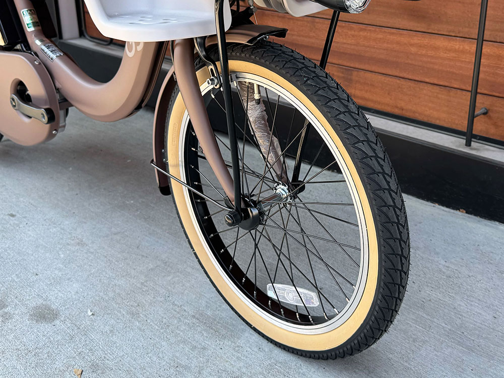 太さ約49mmの20インチタイヤです。幅が広いので安定感があります。