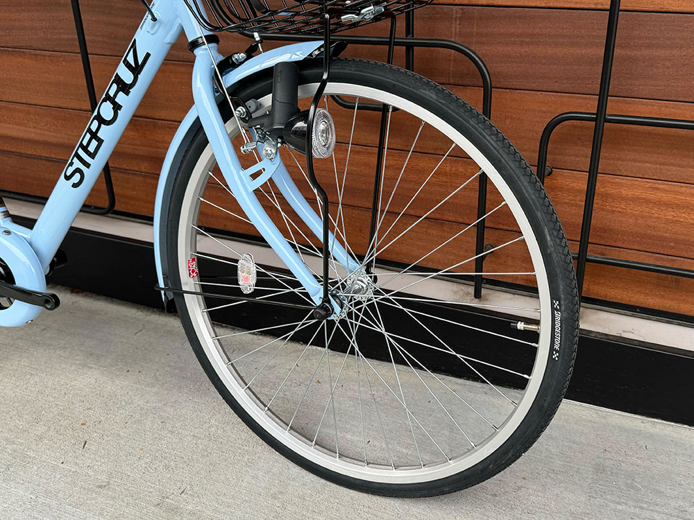 空気を入れるバルブは一般的なシティ車と同じく英式です。