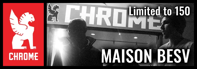耐水・撥水性に優れた素材で、CHROMEとBESVの2つのロゴが入ったオリジナルデザインです。