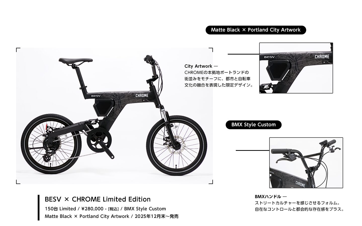 BESV × CHROME コラボ限定車両「PSA 2」発売記念。予約受注でコラボアイテム「HELIX HANDLEBAR BAG(ヘリックス ハンドルバーバッグ)」プレゼント(11/30までの予約が対象です。)