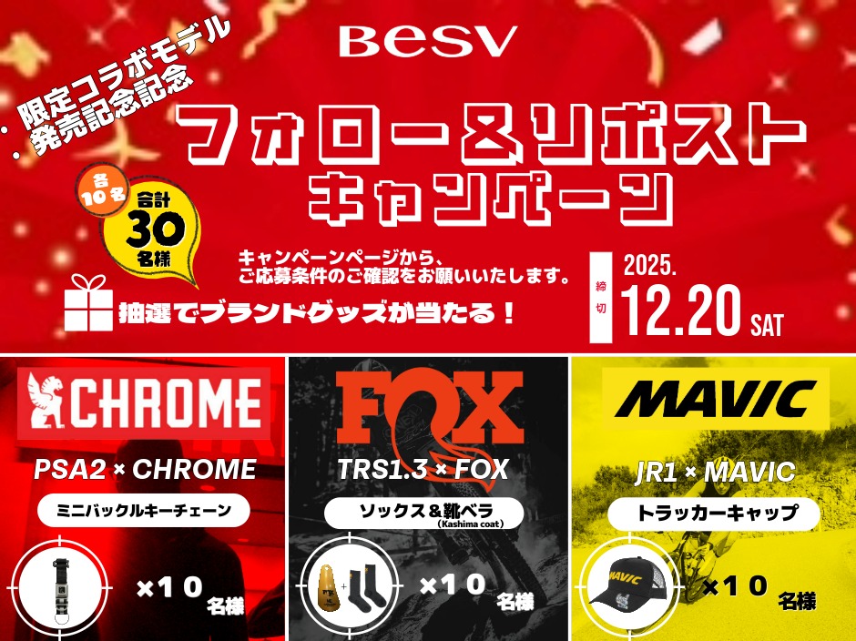 BESV × MAVIC & FOX & CHROMEコラボモデル発売記念。フォロー&リポストキャンペーン(-12/20)