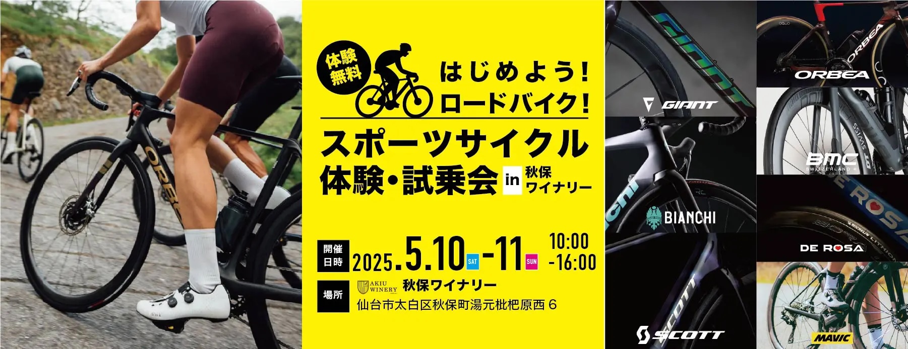 今回はアルミフレームのSPEEDSTERシリーズを紹介させて頂きましたが、最新のSCOTTのカーボンフレームの車体に試乗できるイベントが、今日、明日、太白区秋保の秋保ワイナリーにて開催されます。