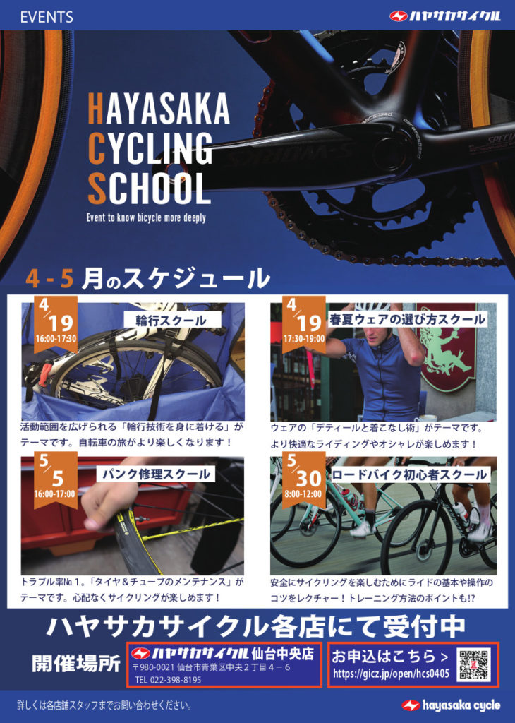 4/25(日) ロードバイク初心者スクール&日常メンテナンススクール