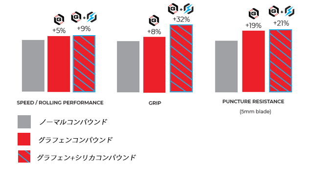 今までのモデルでは グラフェンコンパウンドがウリで耐摩耗性や低い転がり抵抗を特に意識したタイヤでした!
