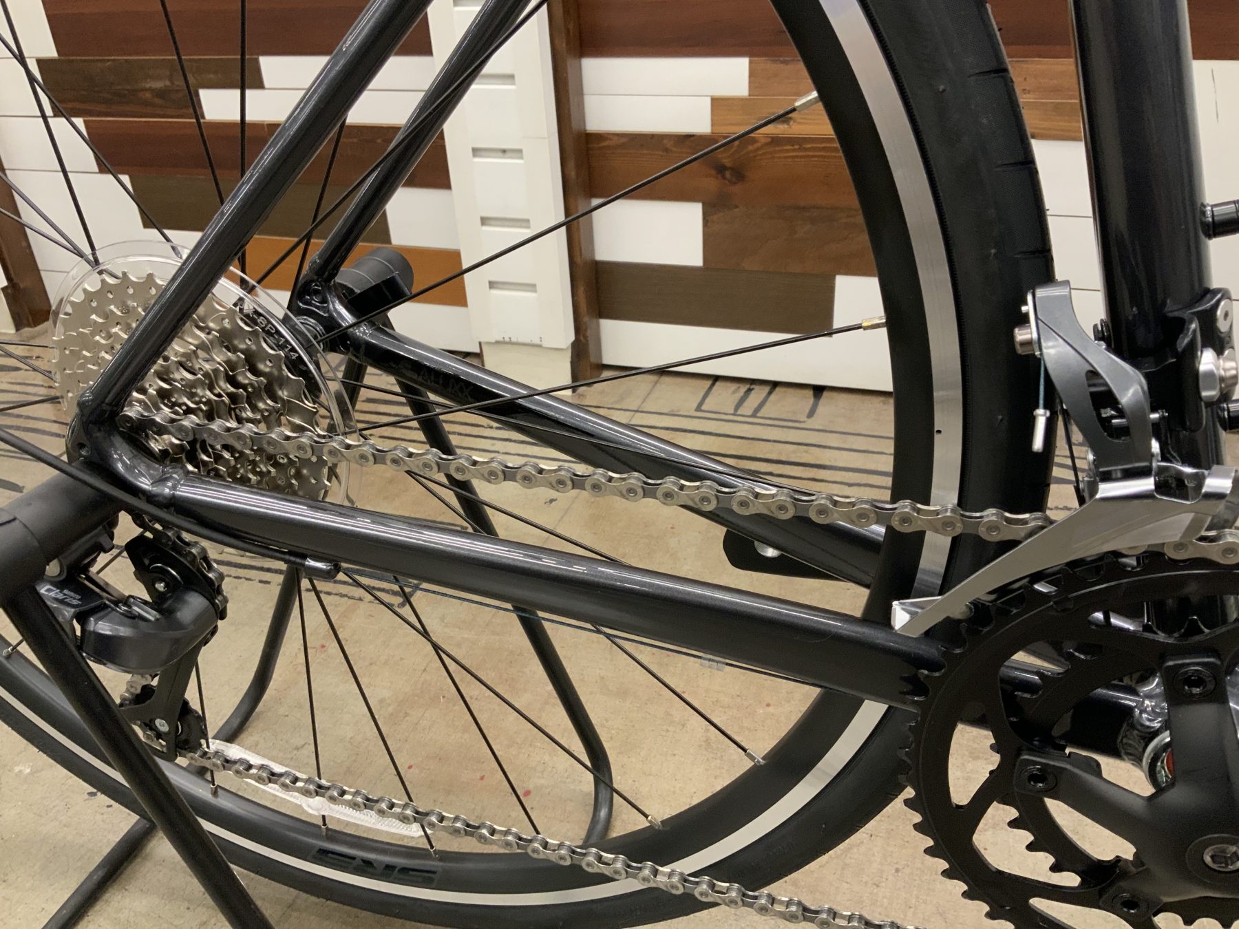 グレーのカラーはシマノクラリスをメインコンポーネントに組まれております!