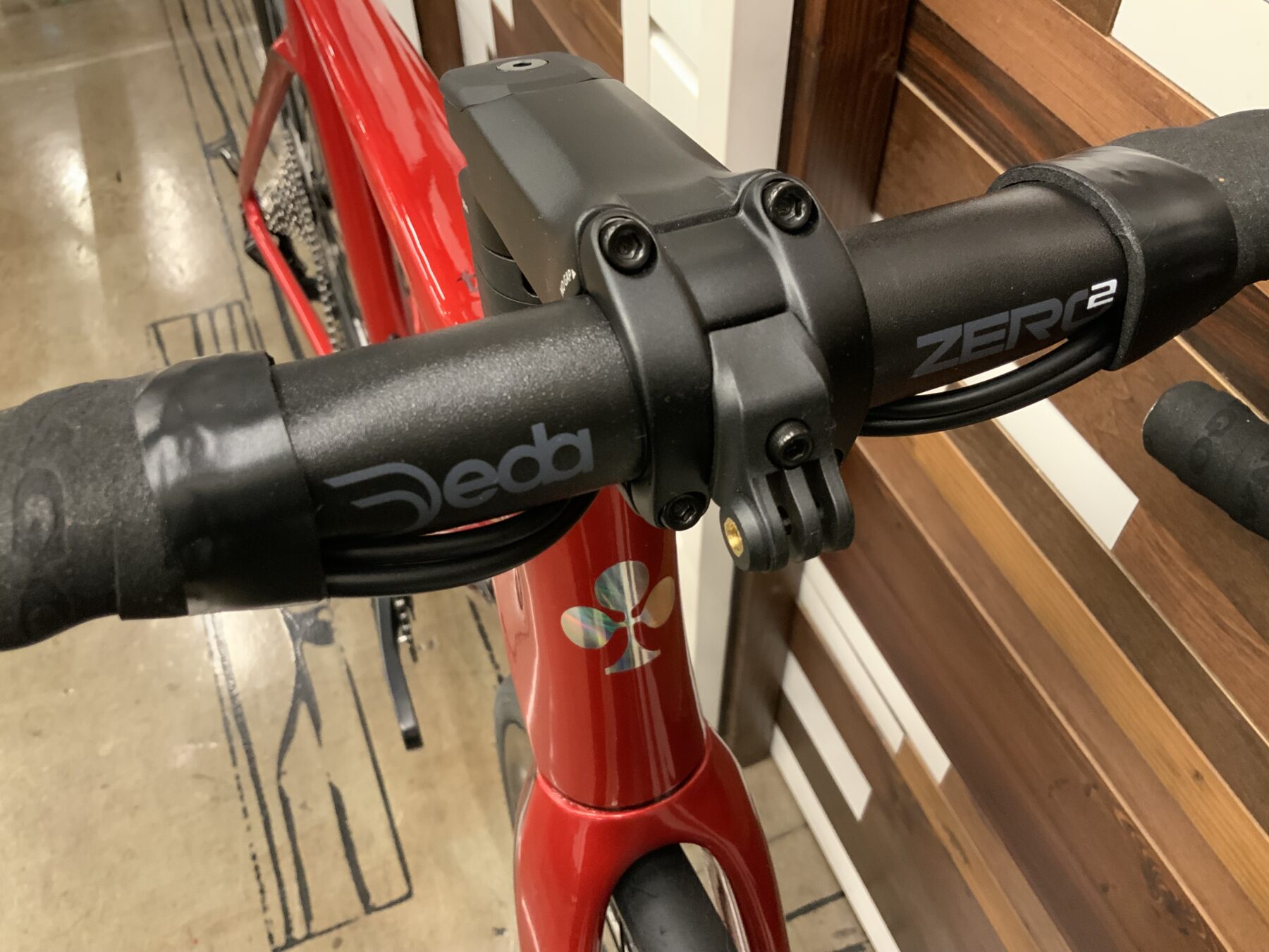 コクピット周りもヘッドチューブからワイヤー、ホース共に内装されスッキリ!ステムクランプからは標準でマウントが取り付けられておりありがたいです☺️