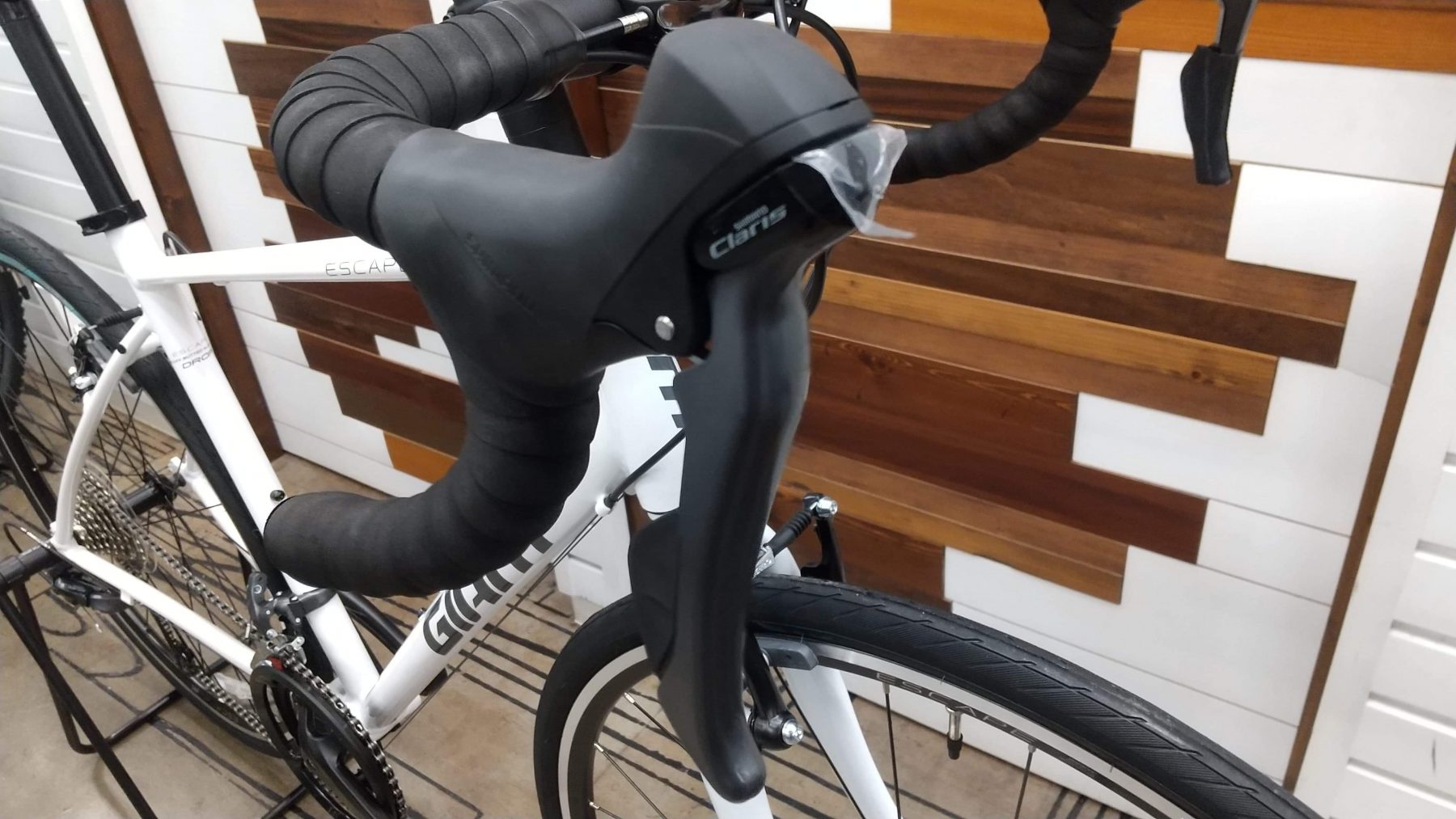 今回のエスケープR3 はフラットハンドルの エスケープR3 をベースにドロップハンドルとロードバイクの変速機構を搭載したモデルです。