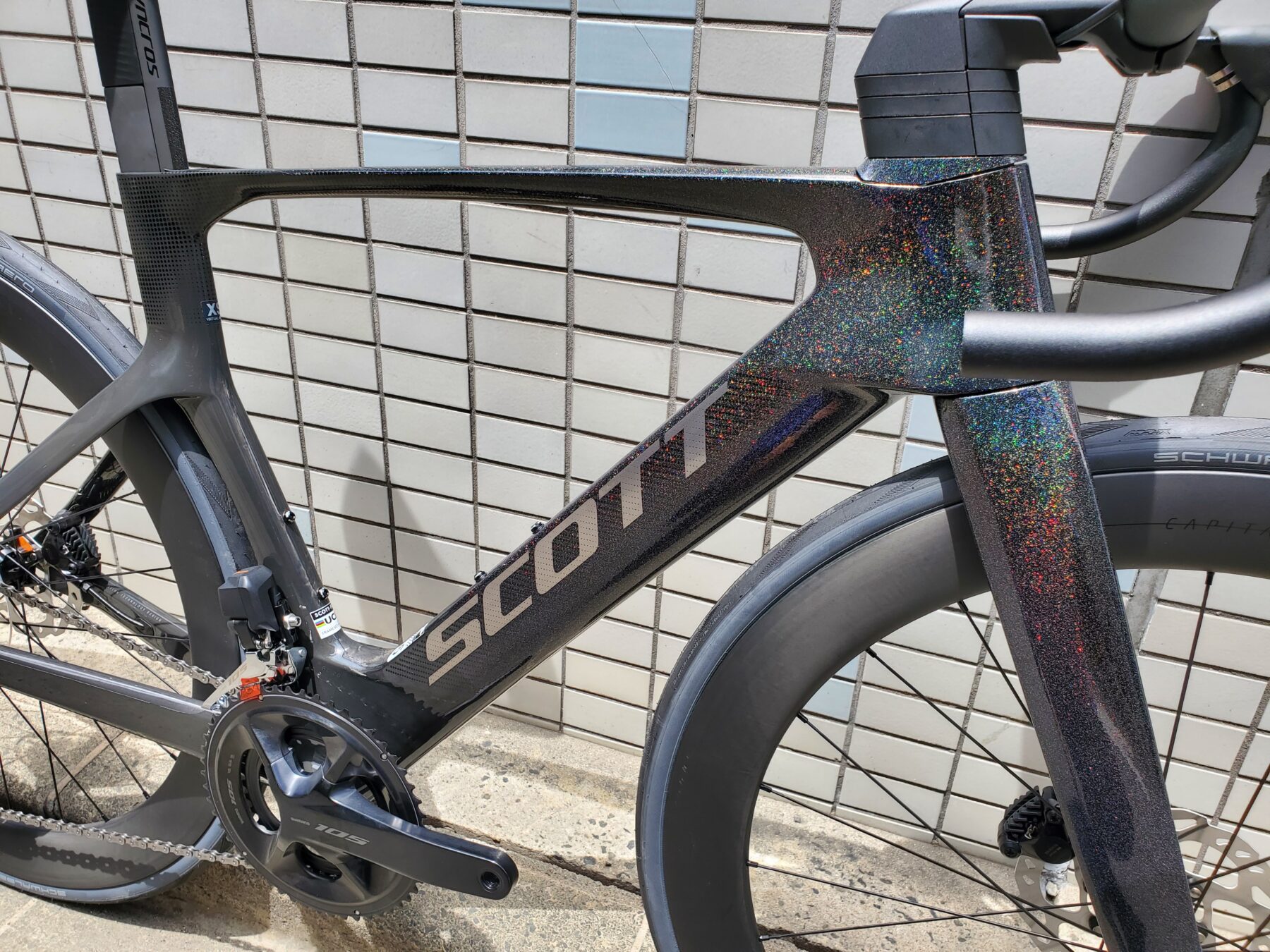 フレームセット販売価格が¥517,000-税込のFOIL RC HMXにSHIMANO105 12S Di2を搭載した即戦力の車体になります。