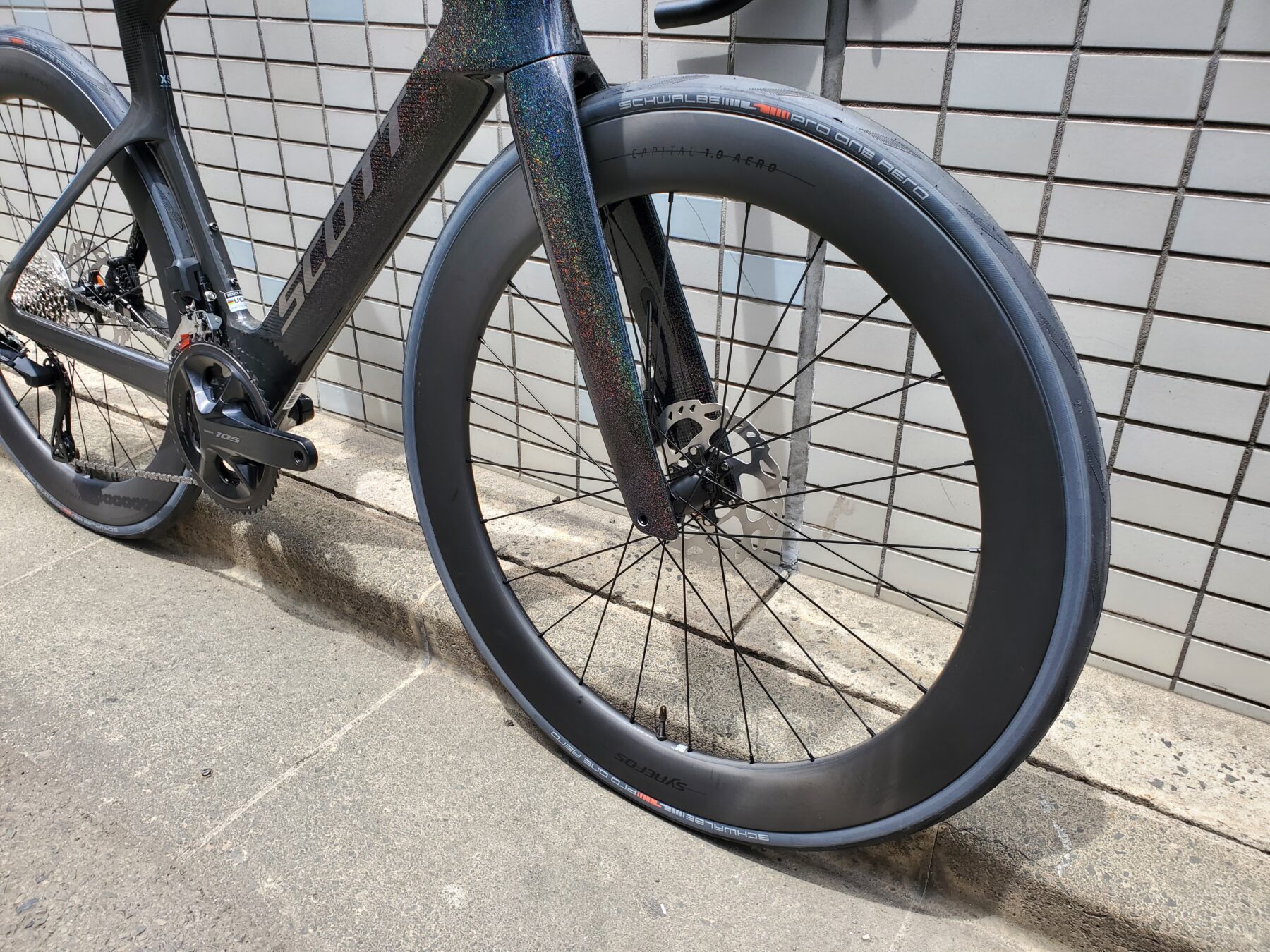 これから発売開始される、SCOTTのパーツブランド、SYNCROS(シンクロス)が本気で作ったホイールセット、CAPITAL 1.0 AERO 60MMが標準装備されていることです。