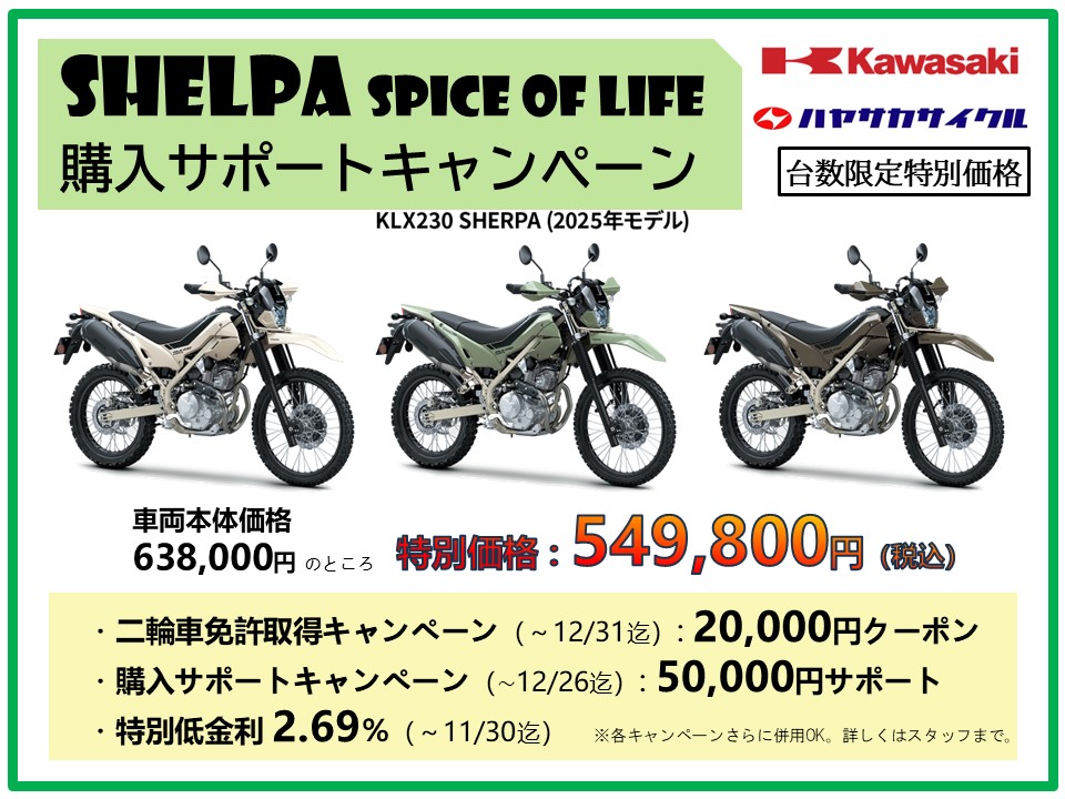 - 【LAST CHANCE】今なら乗出し550,000円以下⁉ 新車 カワサキ KLX230 SHERPA まさかの台数限定超特価だ!