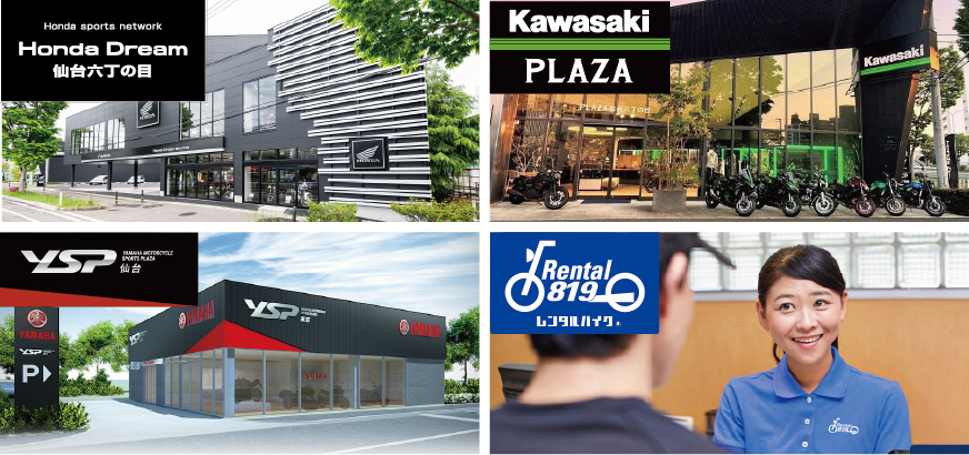 バイク・自転車の販売から点検・修理・車検などのメンテナンスを行っています。あわせて、各種保険やレンタルバイク、パーツ&アクセサリー、カスタマイズ対応など、二輪を通して豊かなライフスタイルをご提案、各種対応、ご提供する店舗運営を行っています。