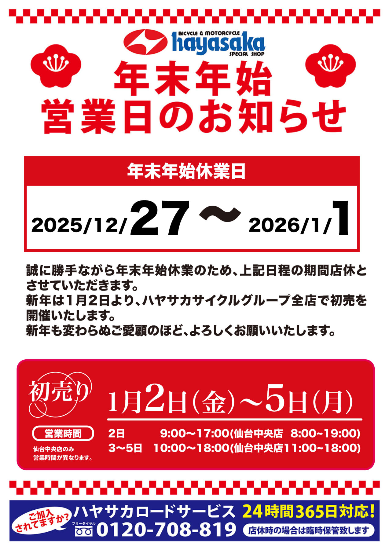 新年は2026年1月2日(金)より初売を開催いたします。