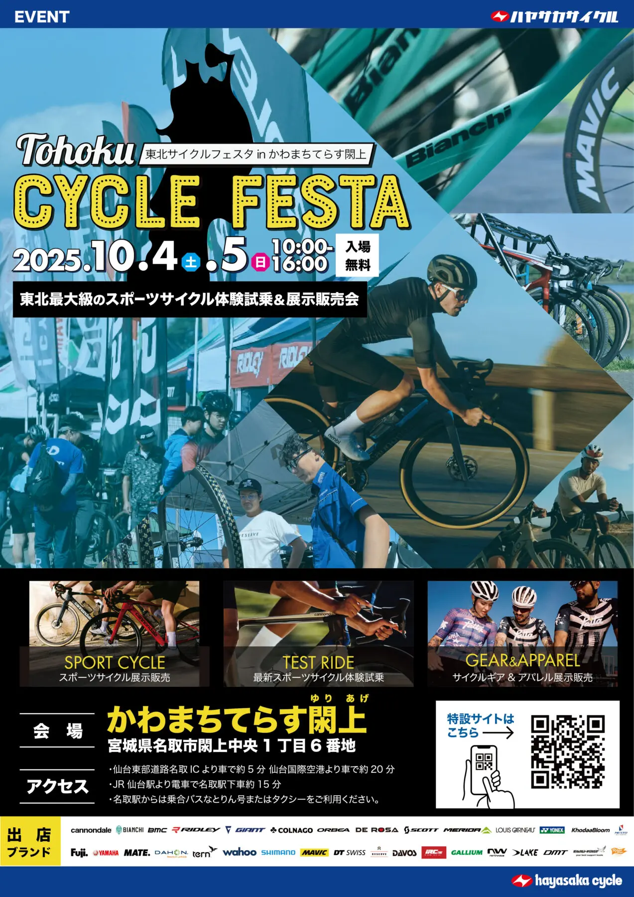- 【10月4日(土)・10月5日(日)】東北最大級のスポーツサイクルフェスティバル「東北サイクルフェスタ2025」開催します!