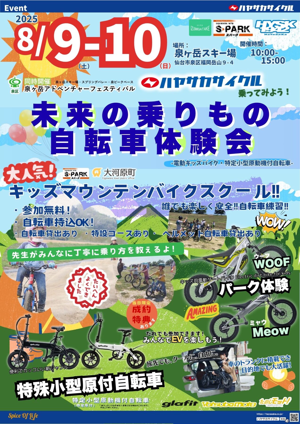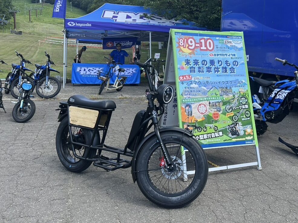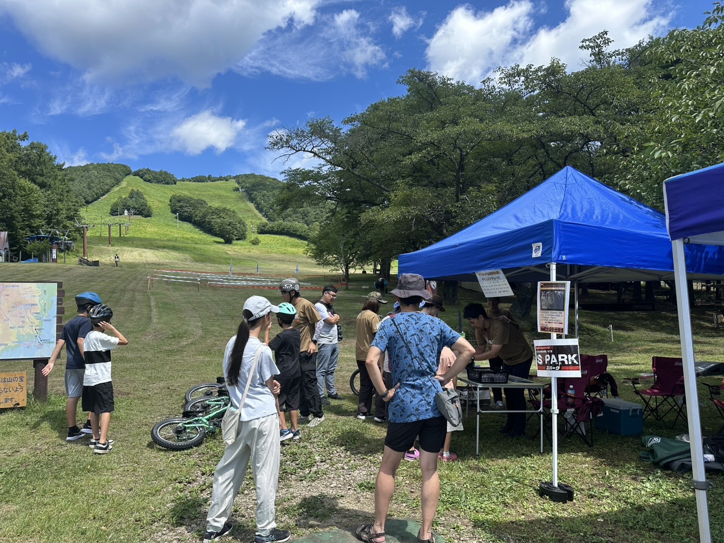 各会場にて魅力的なアクティビティが開催される2日間! ハヤサカサイクルブースは、「泉ヶ岳スキー場」会場にて「未来の乗り物 自転車体験会」を開催中です!