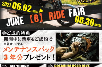 6/2よりハーレーダビッドソン宮城&チェリーズハーレーダビッドソン山形両店で開催!!期間中に女性または女性の方と一緒にご来店&ご成約でWOMEN’S WEARをプレゼント!! 新車ご成約の方にはもれなく3年間 … 続きを読む JUNE【B】RIDE FAIR 開催!!