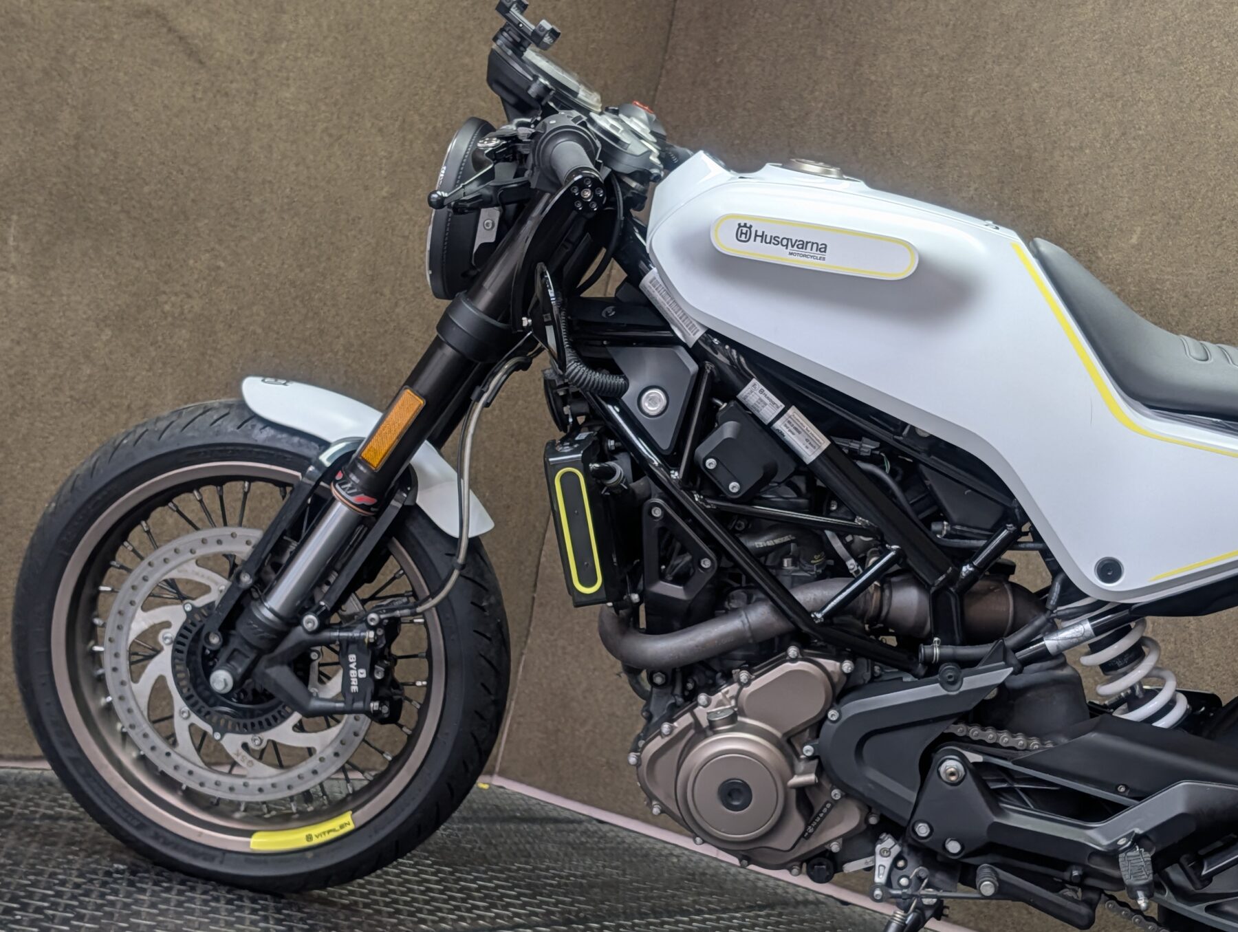先行は “ヴィットピレン(白い矢) ”見ての通りセパレートハンドルで攻めたスタイルを持つモデル。前後にWP製サスペンション、トラスフレームに挟まれた高出力なビッグシングルエンジンによって軽量でありながら力強いトルク。そして国産車では到達できない高回転域まで気持ち良く吹け上ります。現行型ではアップハンドル&キャストホイールとなり、より王道ネイキッドスタイルに近づきましたが、この前傾姿勢の攻めたスタイルとノスタルジックなスポークホイール(チューブレス)の格好良さに惹かれる方も多いのではないでしょうか!?