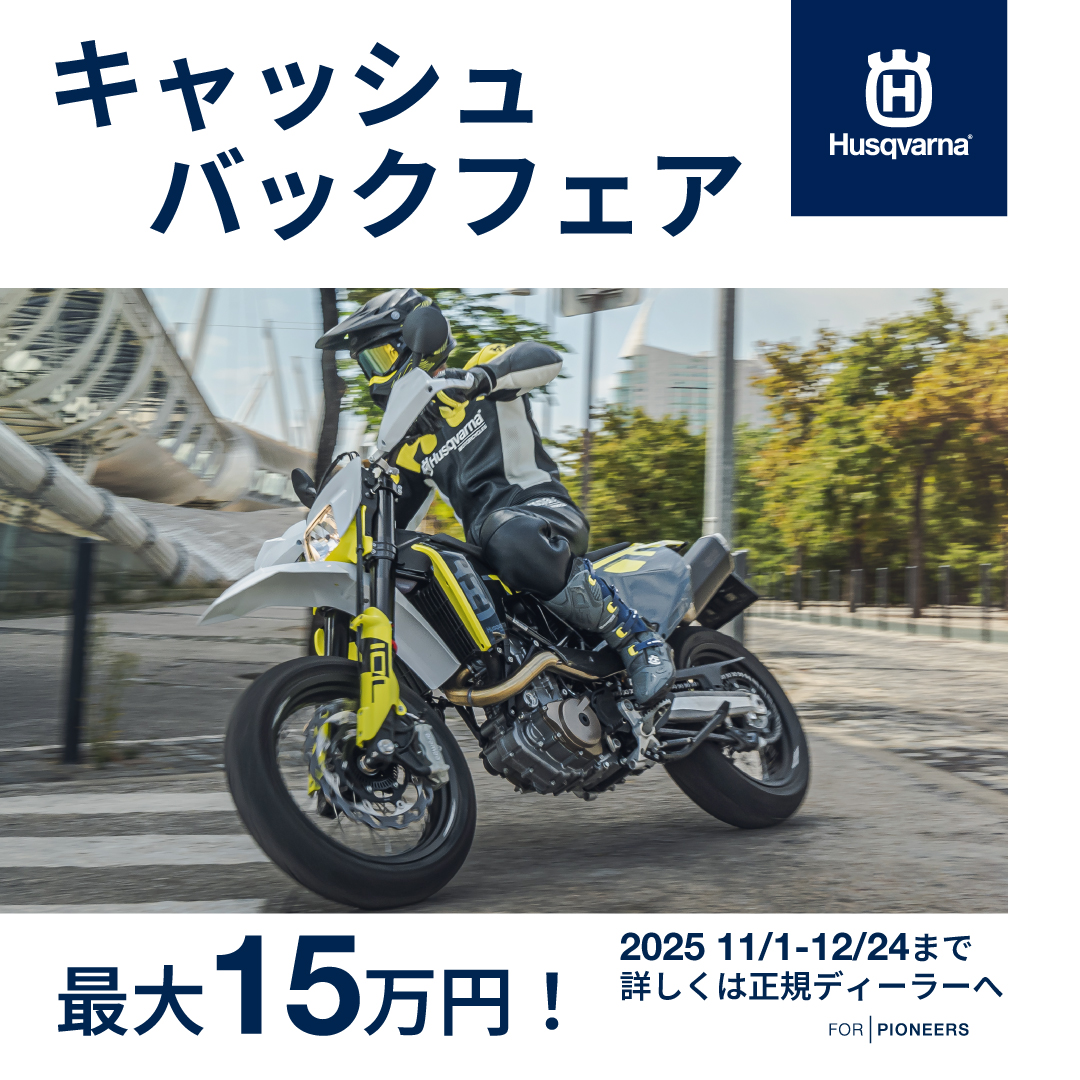 みなさんこんにちは🏍ハスクバーナ仙台です。12月も中盤に差し掛かりました!もうすぐクリスマス。クリスマスが終わったら年明けはもう間もなくです!!そんな12月ですが、かねてより開催されていたハスクバーナモーターサイクルズ・オフィシャルキャンペーン「金利0%」「キャッシュバックフェア」も24日が締め切りとなります🎄