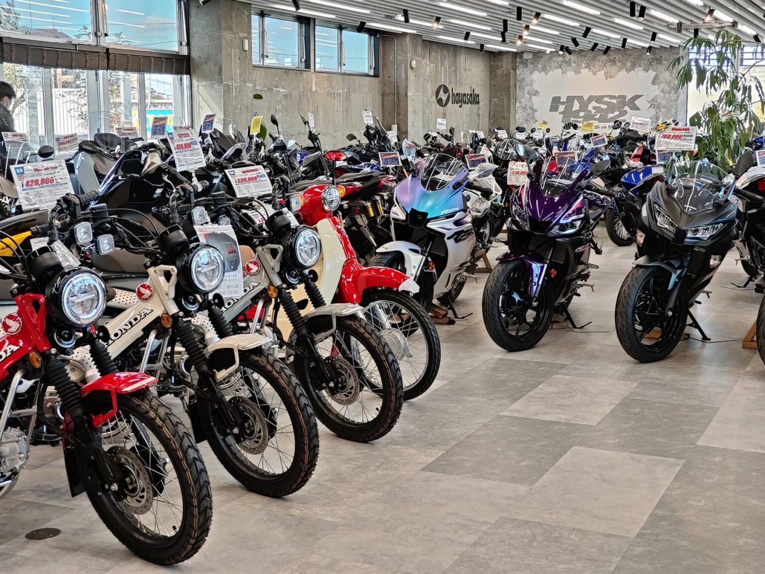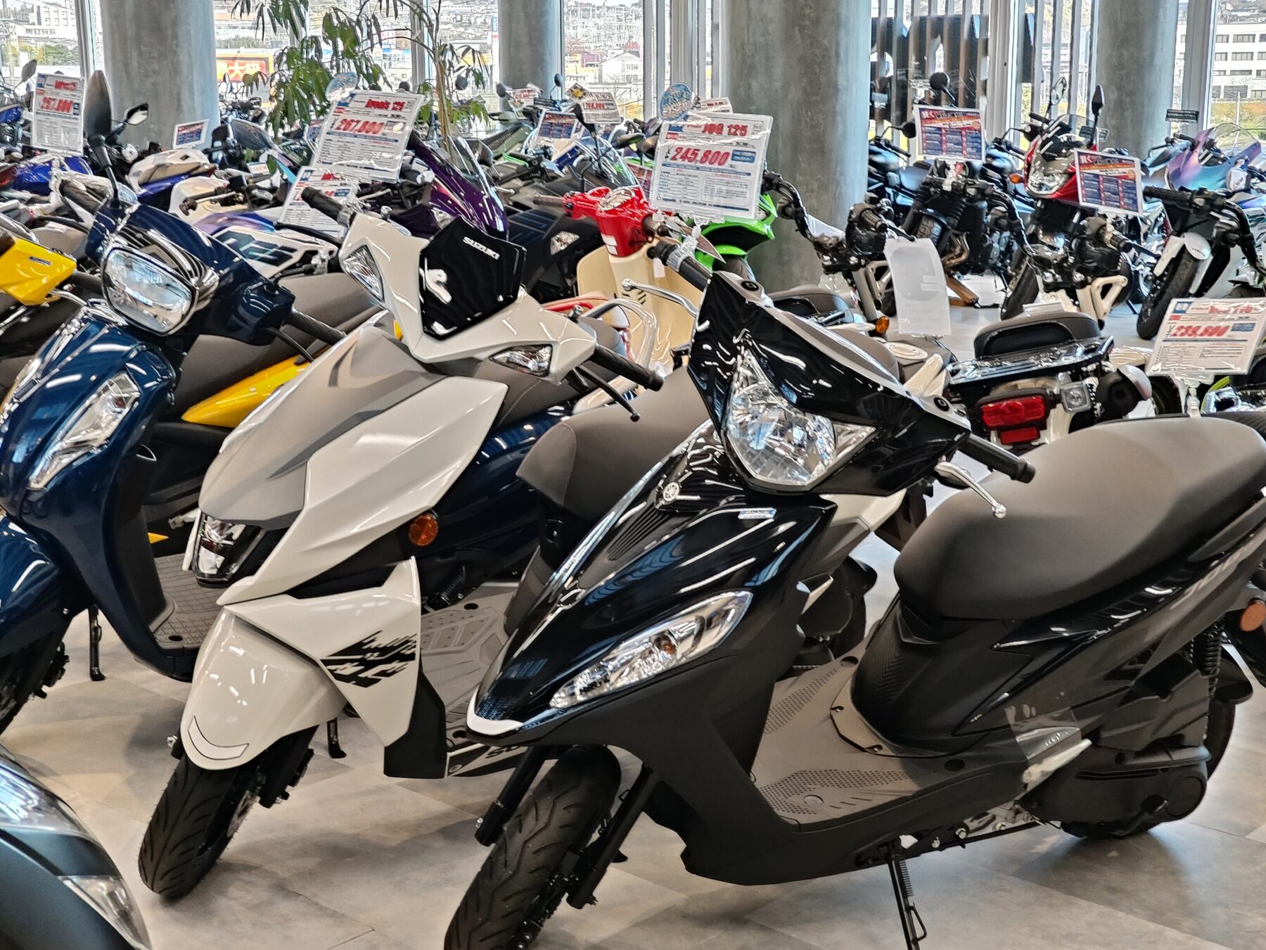 泉バイパス店では,国産から輸入車まで,そして原付から大型バイク,電動バイクまで,魅力あふれるさまざまバイクを圧倒的な車両数の展示でみなさまのご来店をお待ちしております。