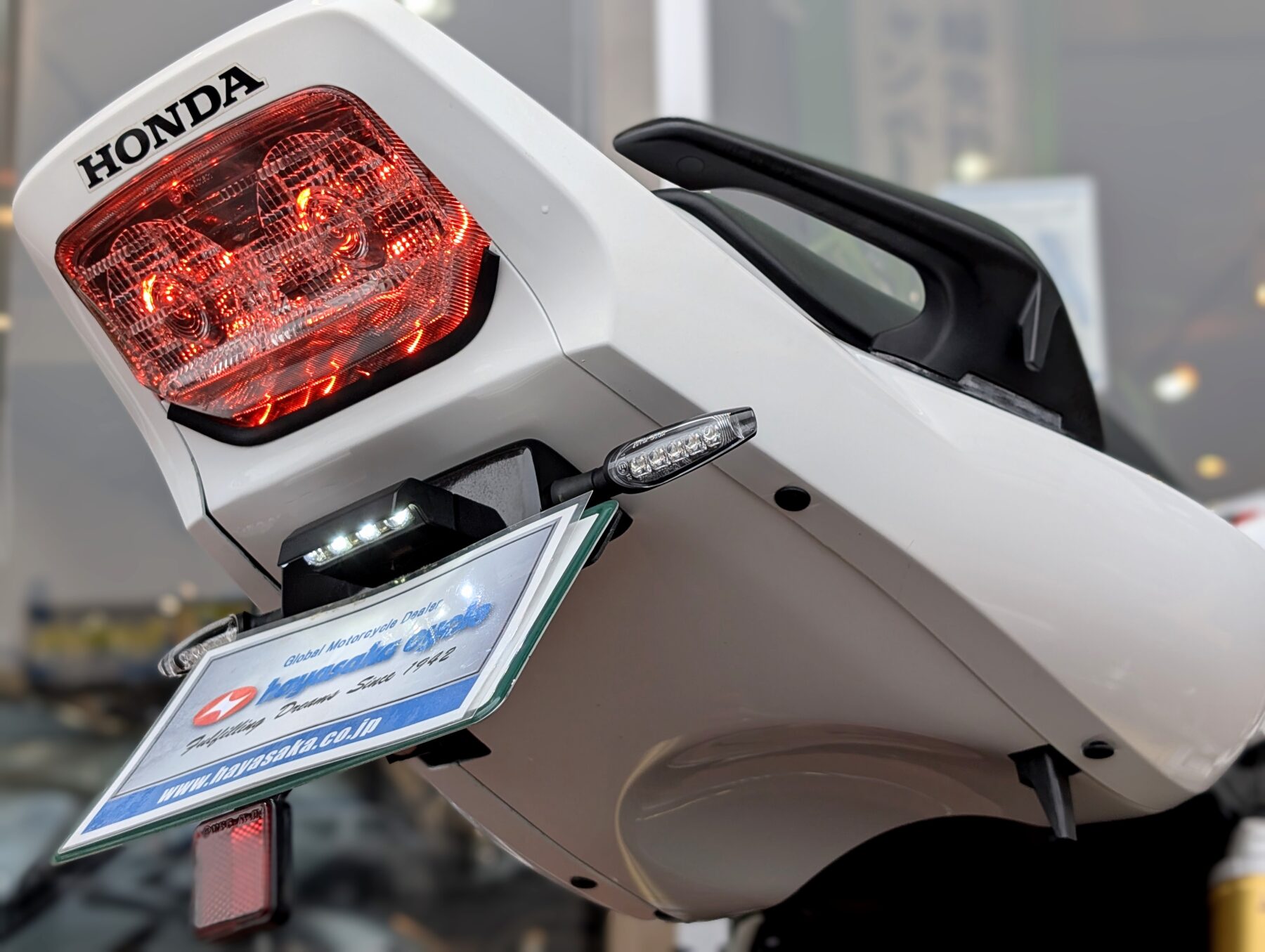 テールまわりはフェンダーレス&LED化。テールカウル裏側も純正ホワイト同色のカウリングを装着。見た目にもスーパースポーツの様な跳ね上がったテールカウルを演出。