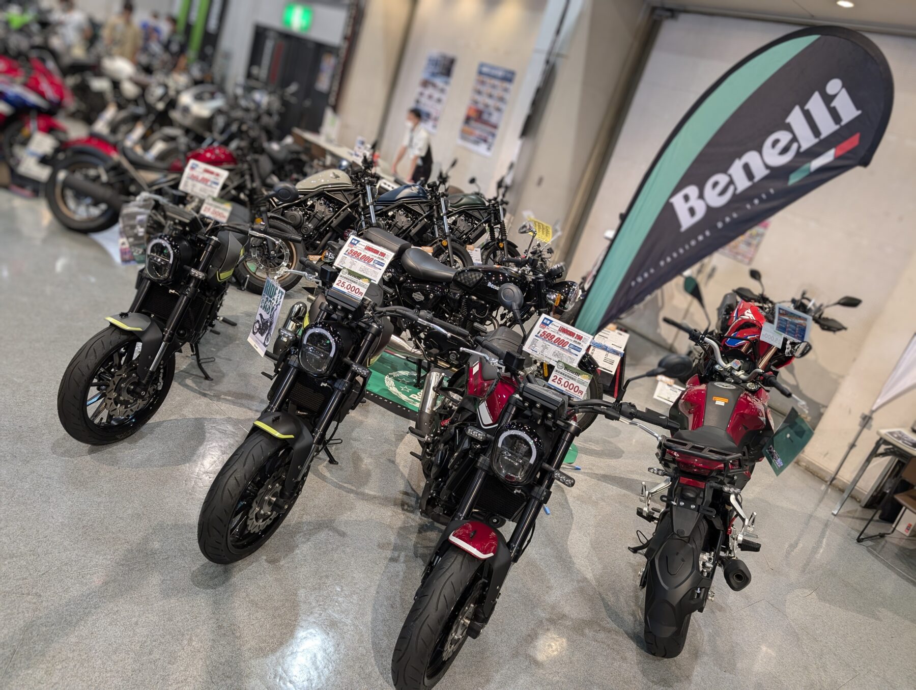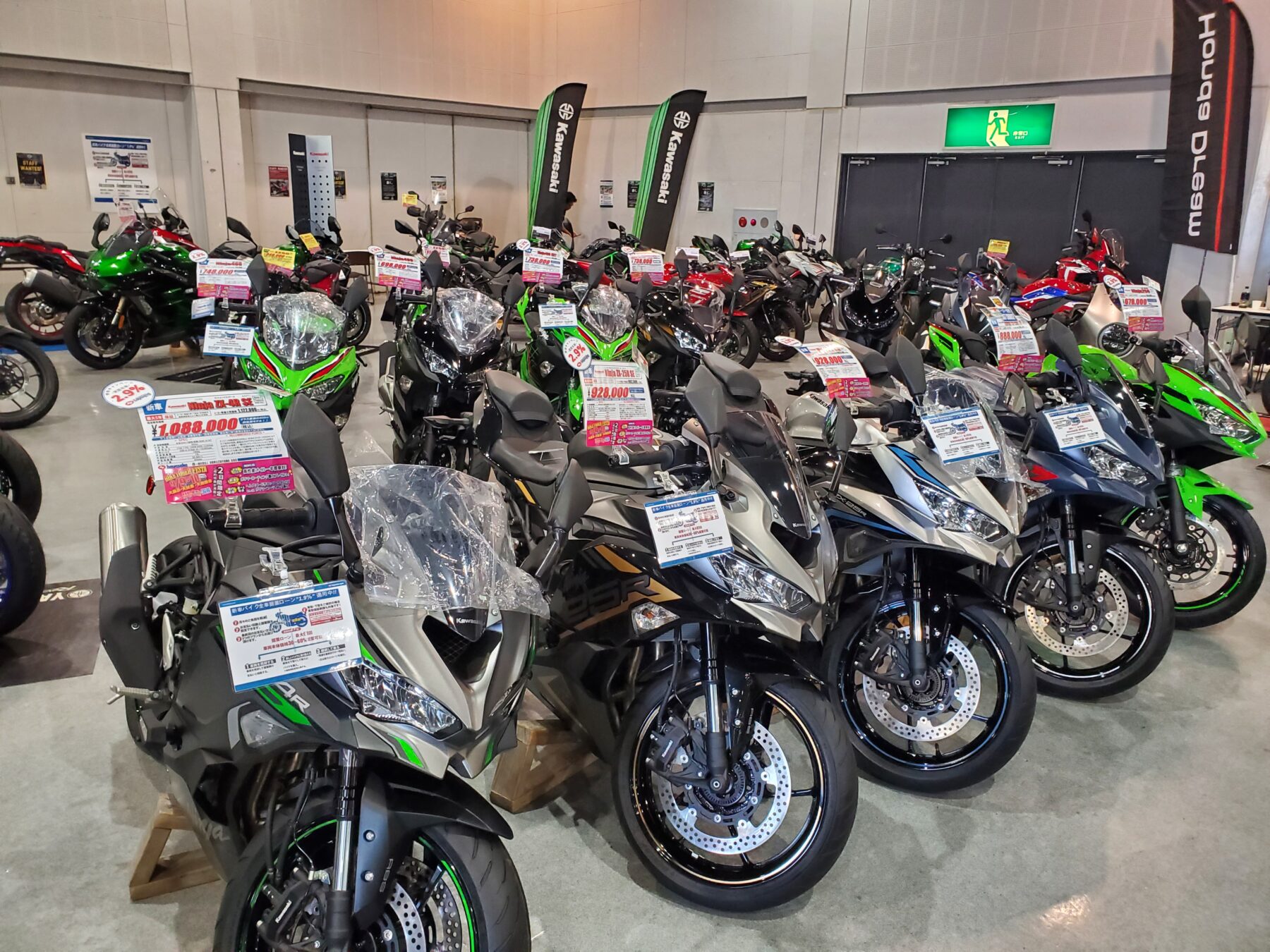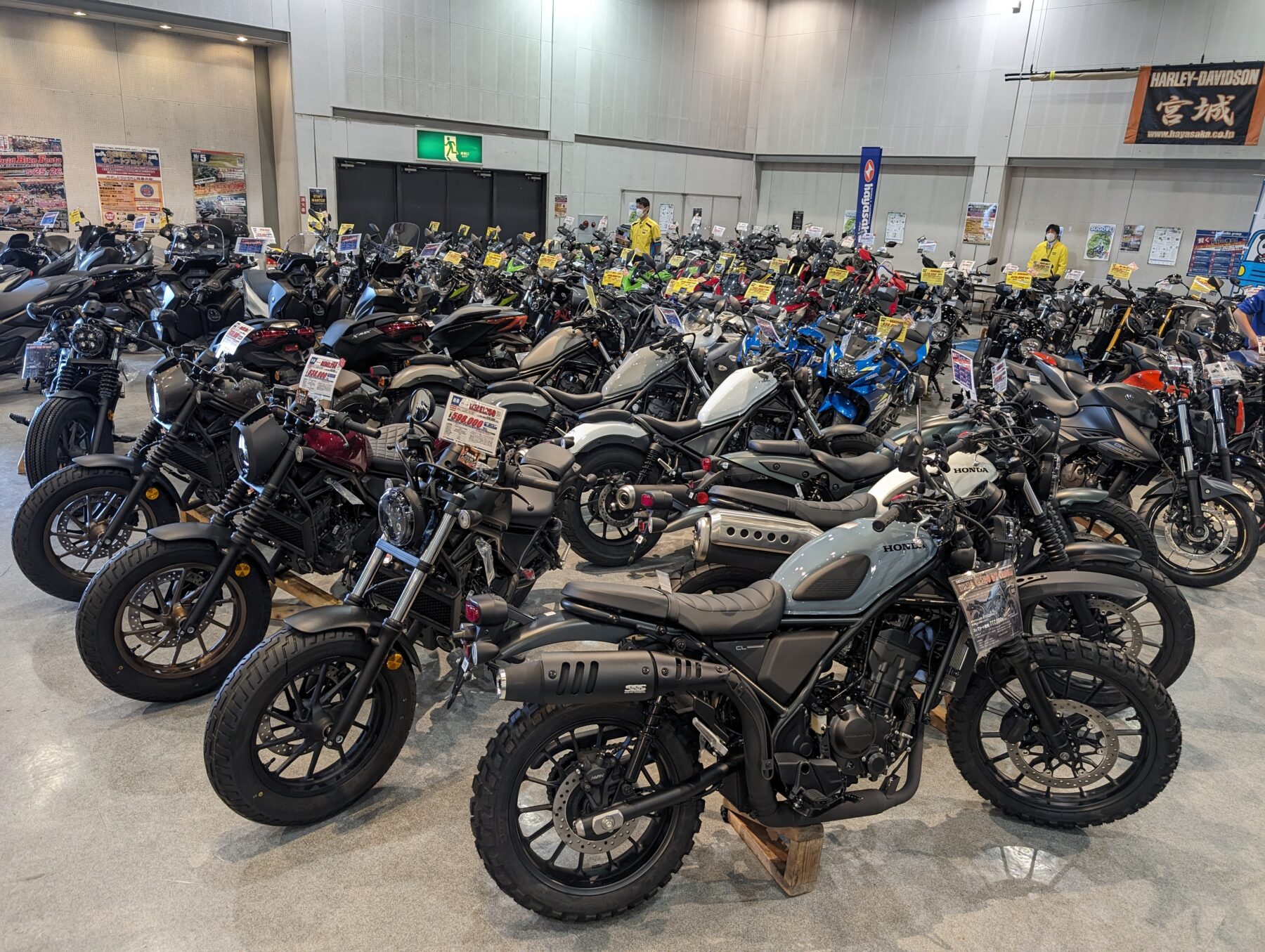 他にも様々なメーカー、ゲストブランドを加えて展示致します。様々な展示会はありますが、当グループが唯一の取扱いであるホンダ/カワサキ/ベネリ/ハスクバーナ/ハーレー含めた全排気量OKの合同展示会は東北では当社でしか実現できないイベントとなります。当社としても、これこそ最大の強みであると感じます。合わせて行われる用品ブースや試乗会等、コンテンツも盛り沢山。何より最新のバイク、中古車、350台以上という圧巻のスケール。