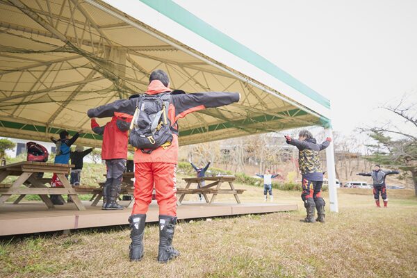 車両、装備などはレンタル可能なので待機所でお着換えです。