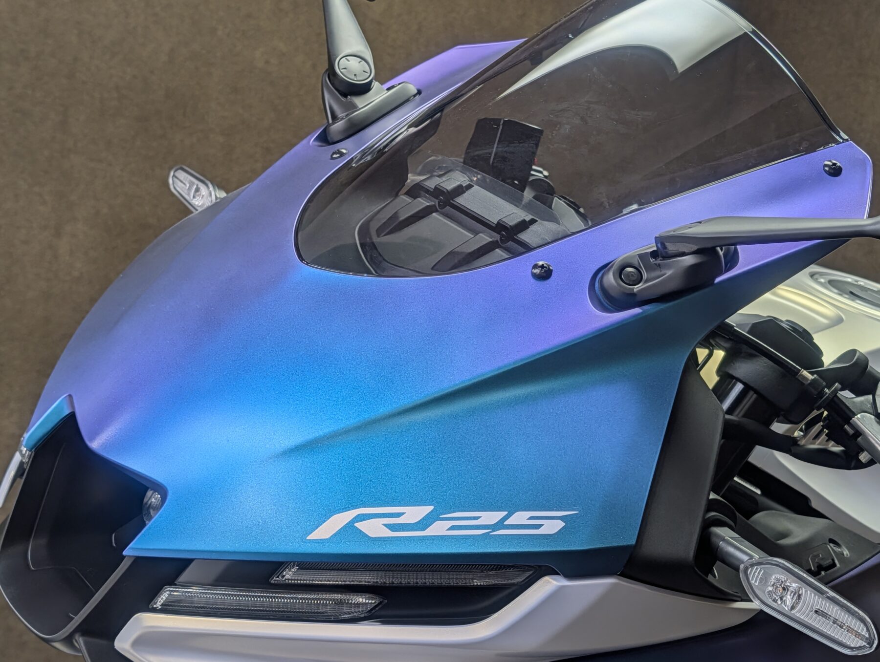 独自のカラーが魅力的なYAMAHA YZF-R25 の2025年モデル。走りが良いのは勿論ですが、それ以上にこのカラーが凄いです。