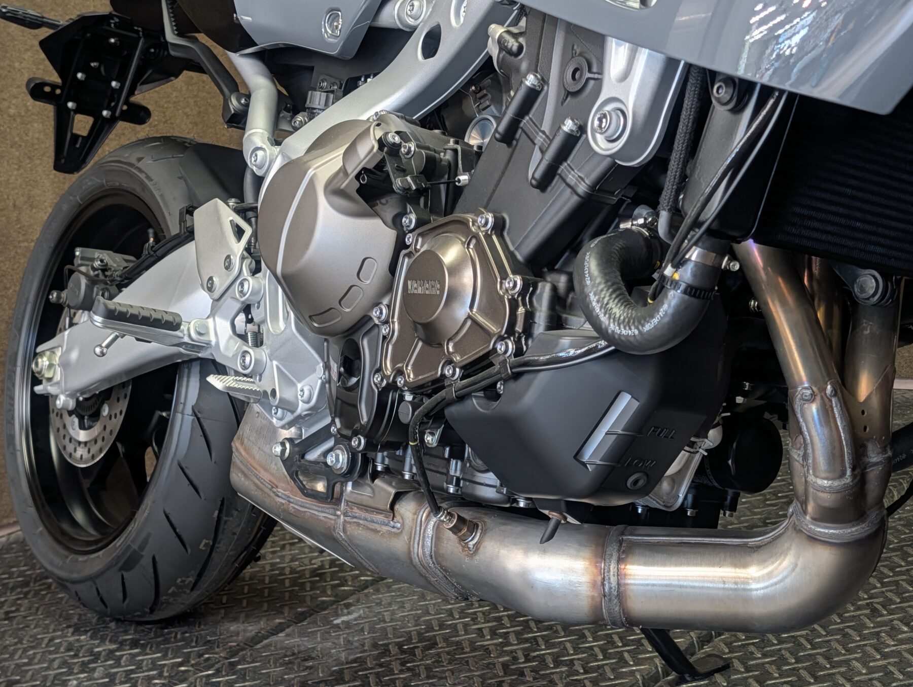 エンジンに関しては、数々の栄光を築いてきたモトGPマシン、YZF-M1から生まれたクロスプレーン型クランクシャフト採用の直列4気筒エンジンのデータを3気筒に落し込んだもので、位相クランクからなる実用域での扱い易さから高速域でのスポーティな走りまで幅広い走りを可能としております。