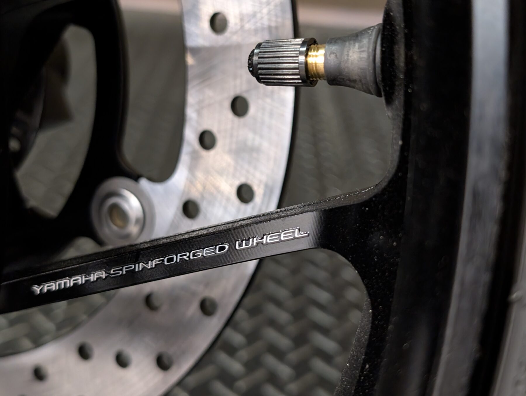 ヤマハだからこそ製造可能な溶接面の無い超軽量フレーム(ヤマハ音楽部門 ピアノフレームのアルミ鋳造技術を惜しみなく投入)や特許技術で製造されたスピンホージドホイール(鍛造並の軽さと強度を鋳造で可能とした超軽量ホイール)。そして、ヤマハが押している直列3気筒エンジン。不等間隔爆発による理想的なパワーラインとトルク、吹け上りを可能にしているパワートレイン! 独特な排気音も格好良いぜ!!