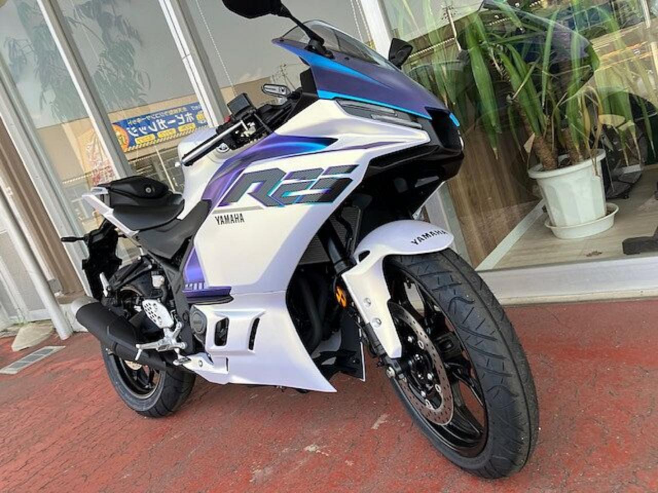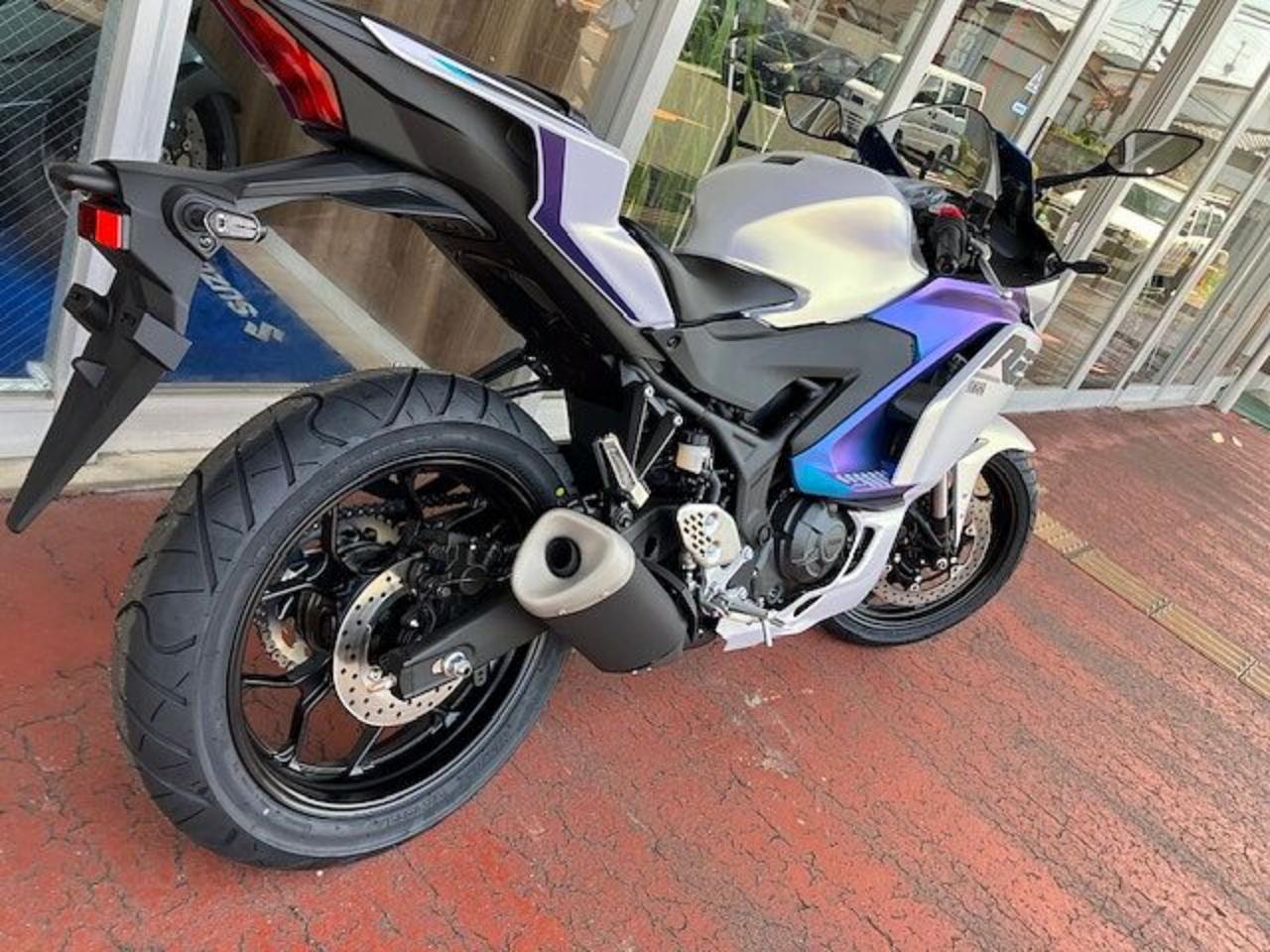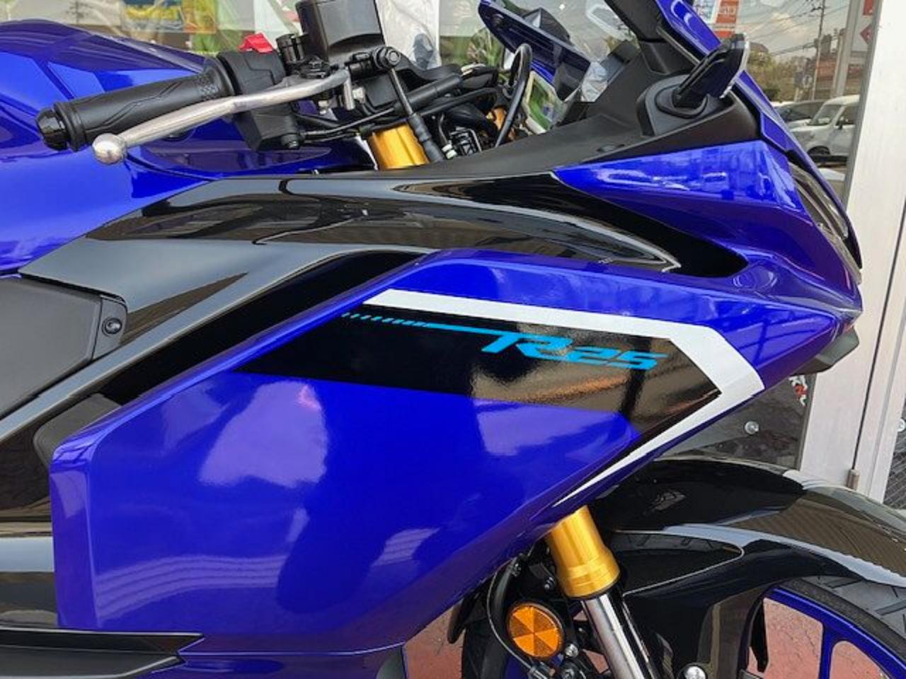 YZF-R25の新色「ディープパープリッシュブルーメタリックC(ブルー)」と「マットイエローイッシュホワイトパール1(マットパールホワイト)」がついに入荷しました!! 目を惹く美しさ😍