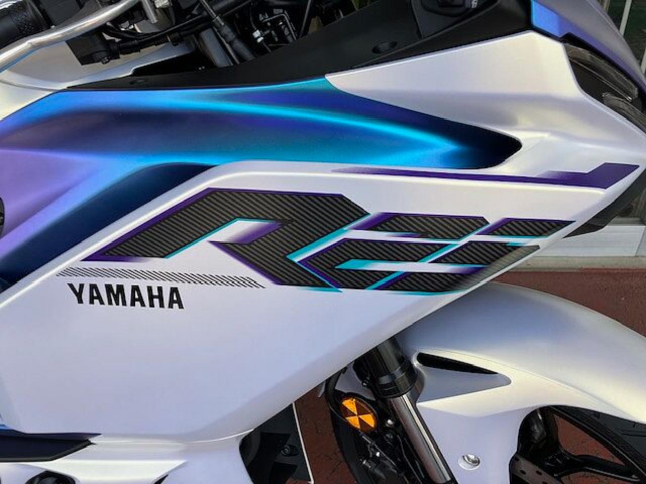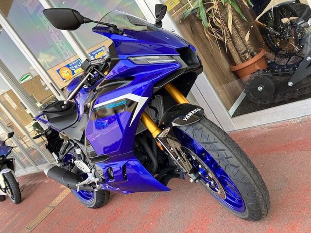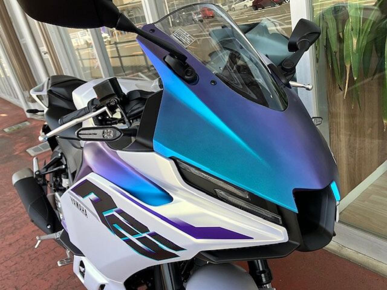 YZF-R25の新色「ディープパープリッシュブルーメタリックC(ブルー)」と「マットイエローイッシュホワイトパール1(マットパールホワイト)」がついに入荷しました!! 目を惹く美しさ😍