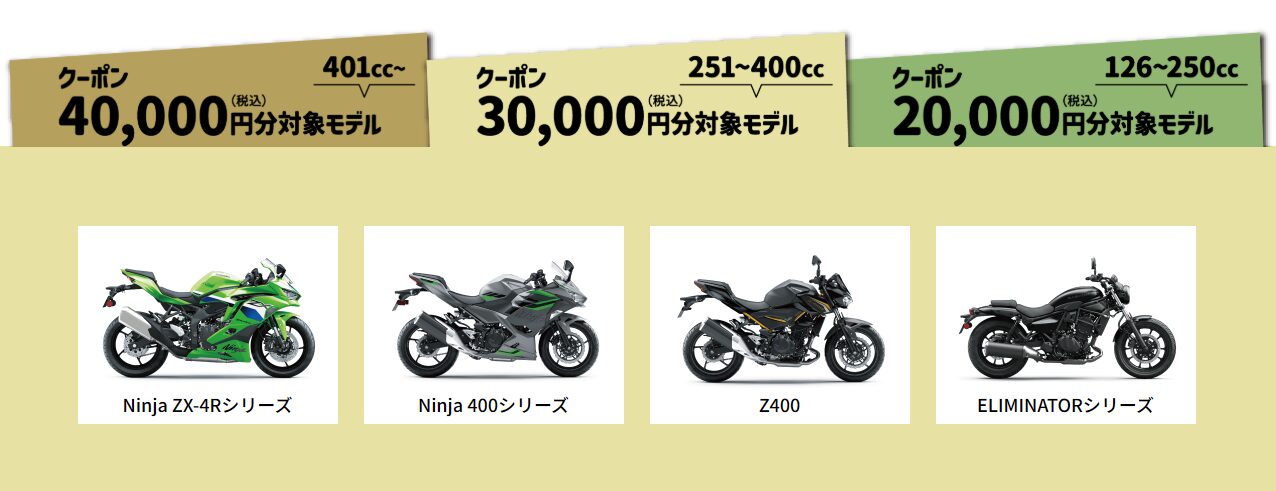 ※エントリー時に29歳以下で400cc以下のモデルを購入いただいた場合は、