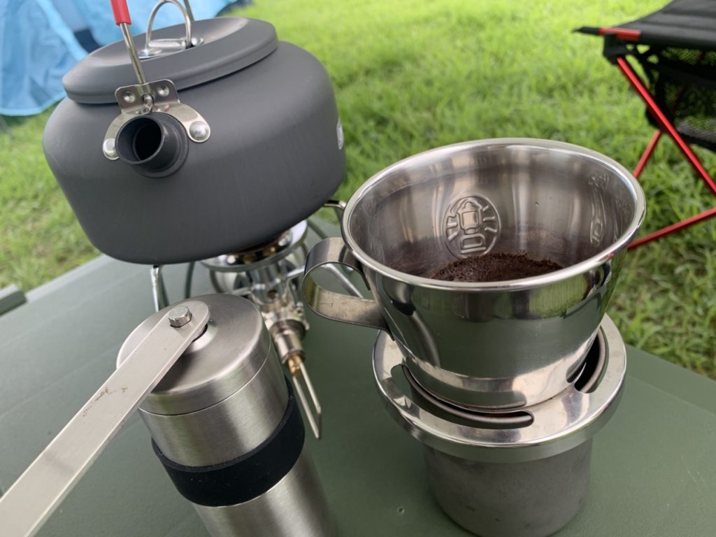 朝にコーヒーを飲むのはキャンプに限ったことではないですが、美味しく感じがち。