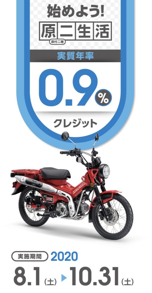 本日8月1日からはカブシリーズも対象の「原付二種0.9%クレジット」キャンペーンがスタートしております。